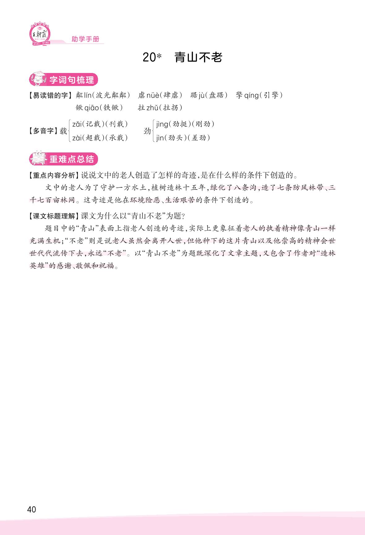2023上册六年级语文人教版 助学手册 第六单元——20 青山不老