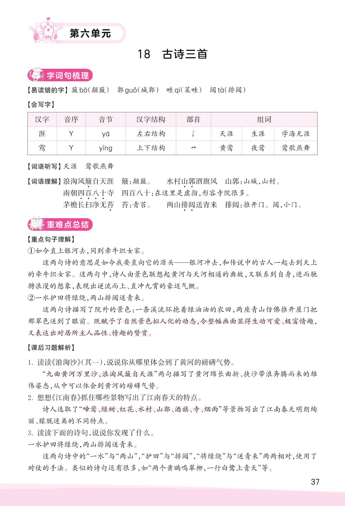2023上册六年级语文人教版 助学手册 第六单元——18 古诗三首