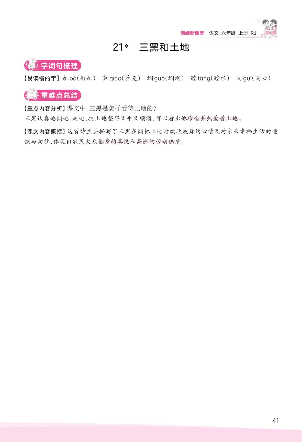 2023上册六年级语文人教版 助学手册 第六单元——21 三黑和土地