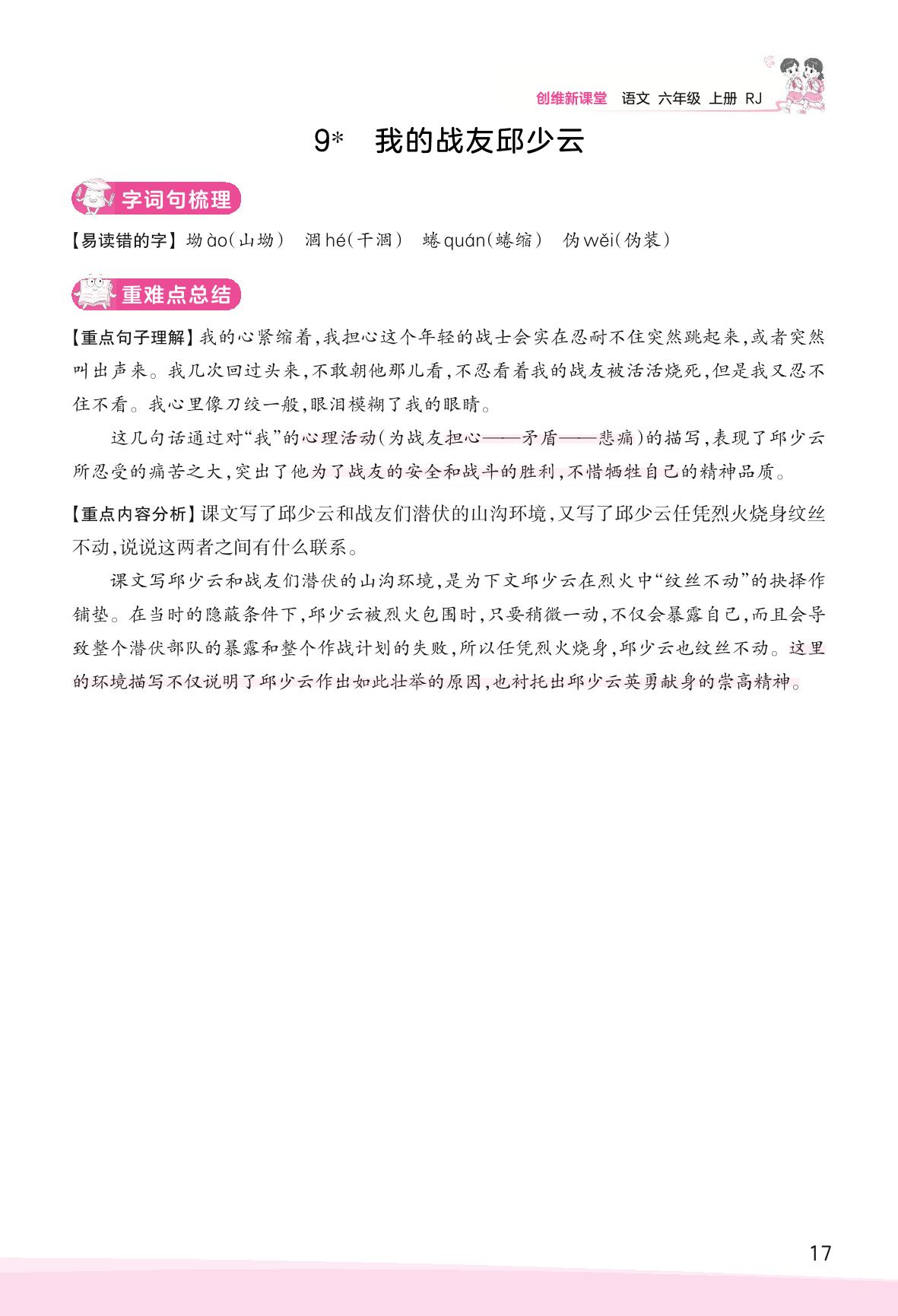 2023上册六年级语文人教版 助学手册 第二单元——9 我的战友邱少云