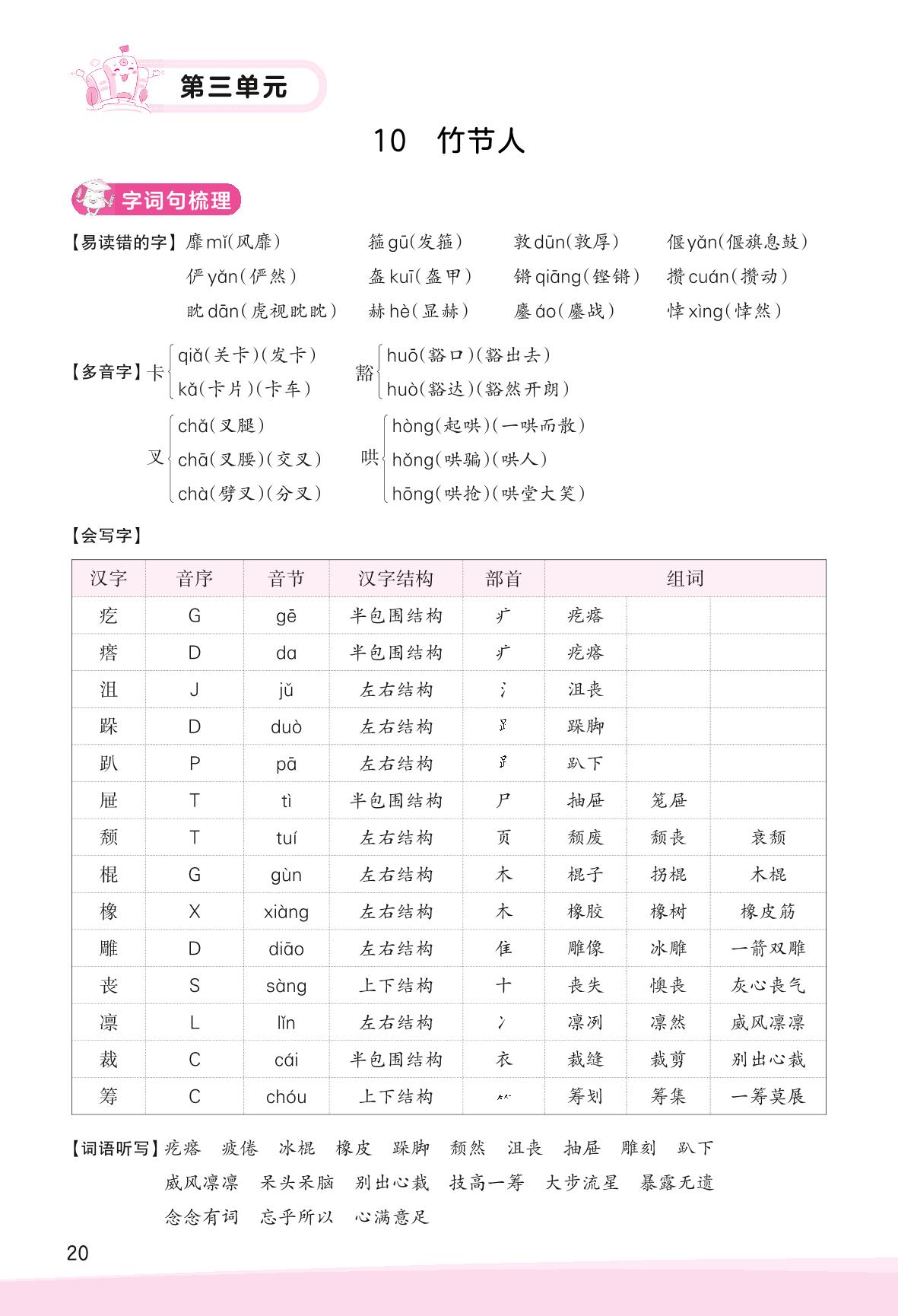 2023上册六年级语文人教版 助学手册 第三单元——10 竹节人