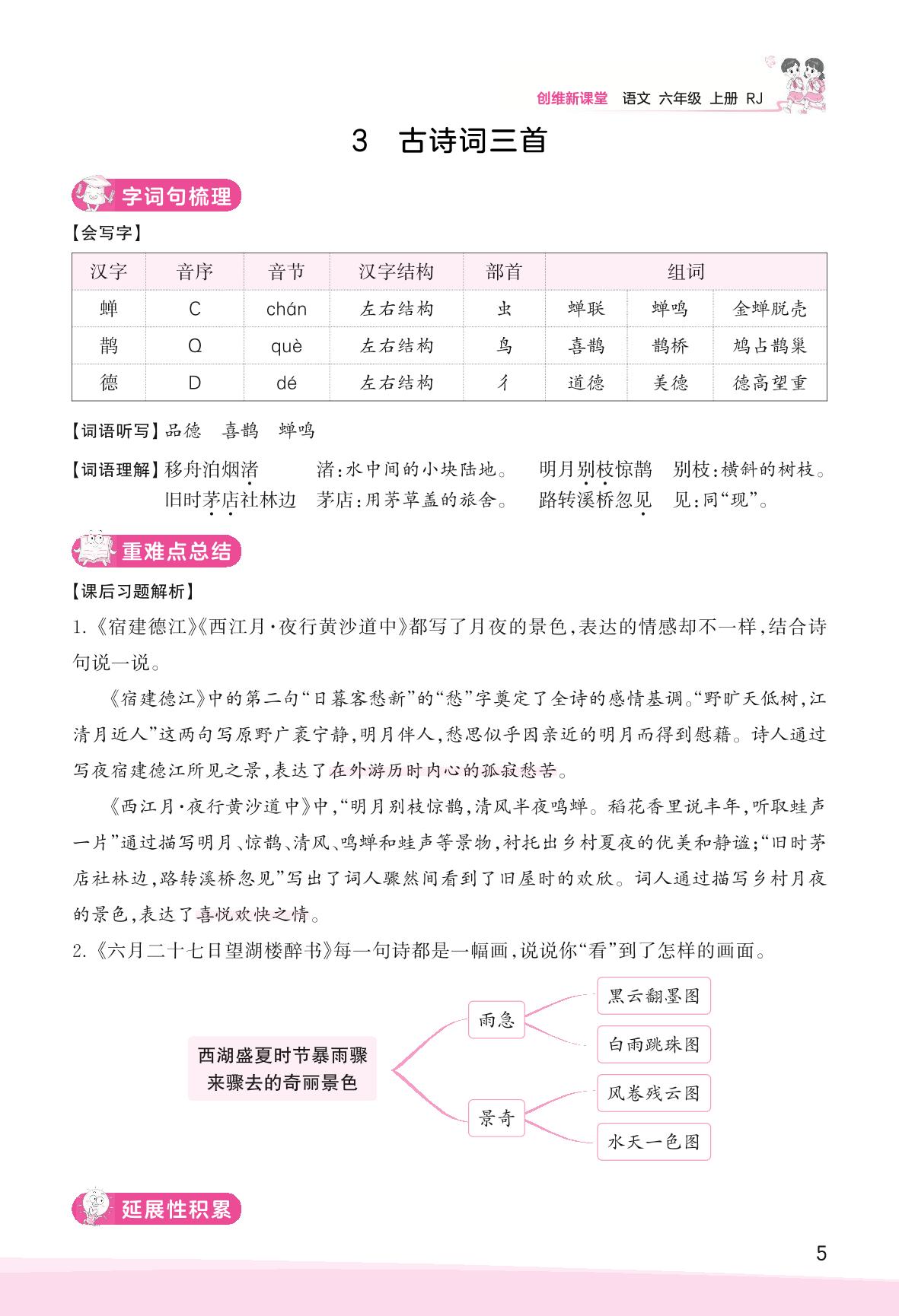 2023上册六年级语文人教版 助学手册 第一单元——3 古诗词三首