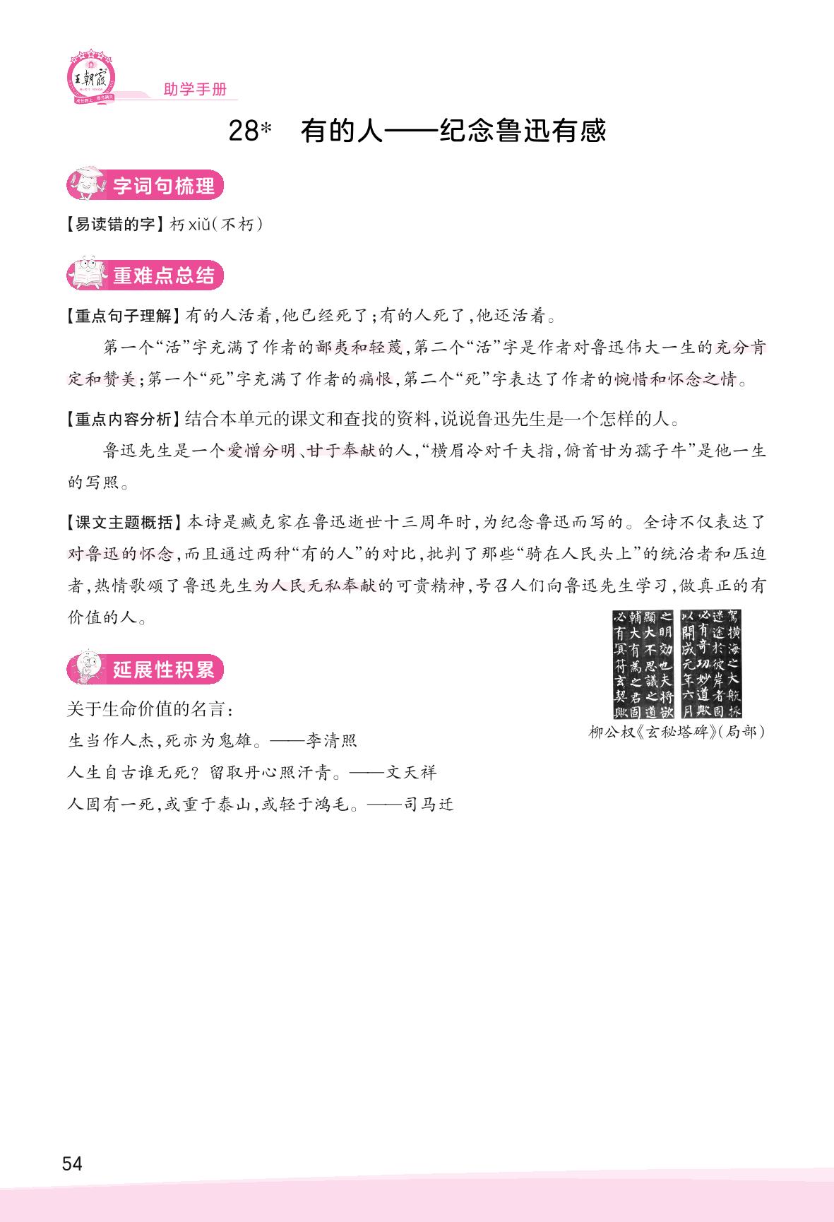 2023上册六年级语文人教版 助学手册 第八单元——28 有的人——纪念鲁迅有感