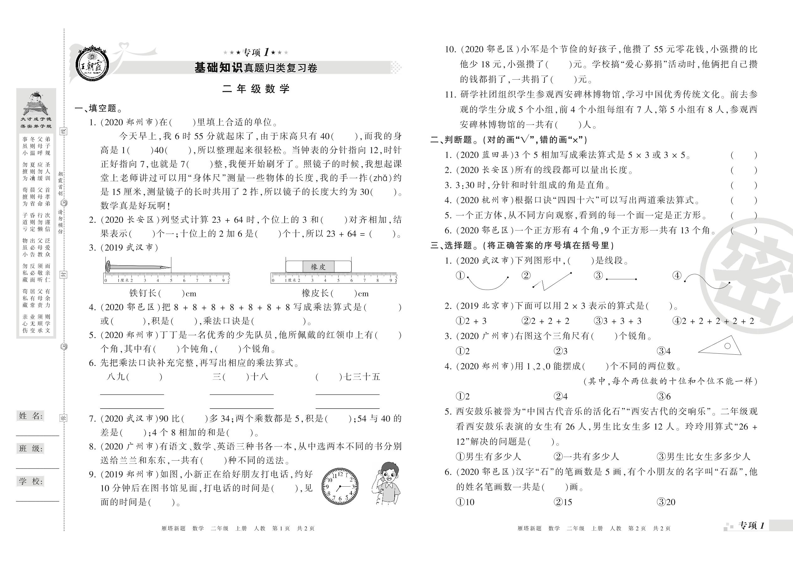 王朝霞期末专项卷——基础知识、计算真题归类复习二年级上册数学(人教版)_R21080383947【0】