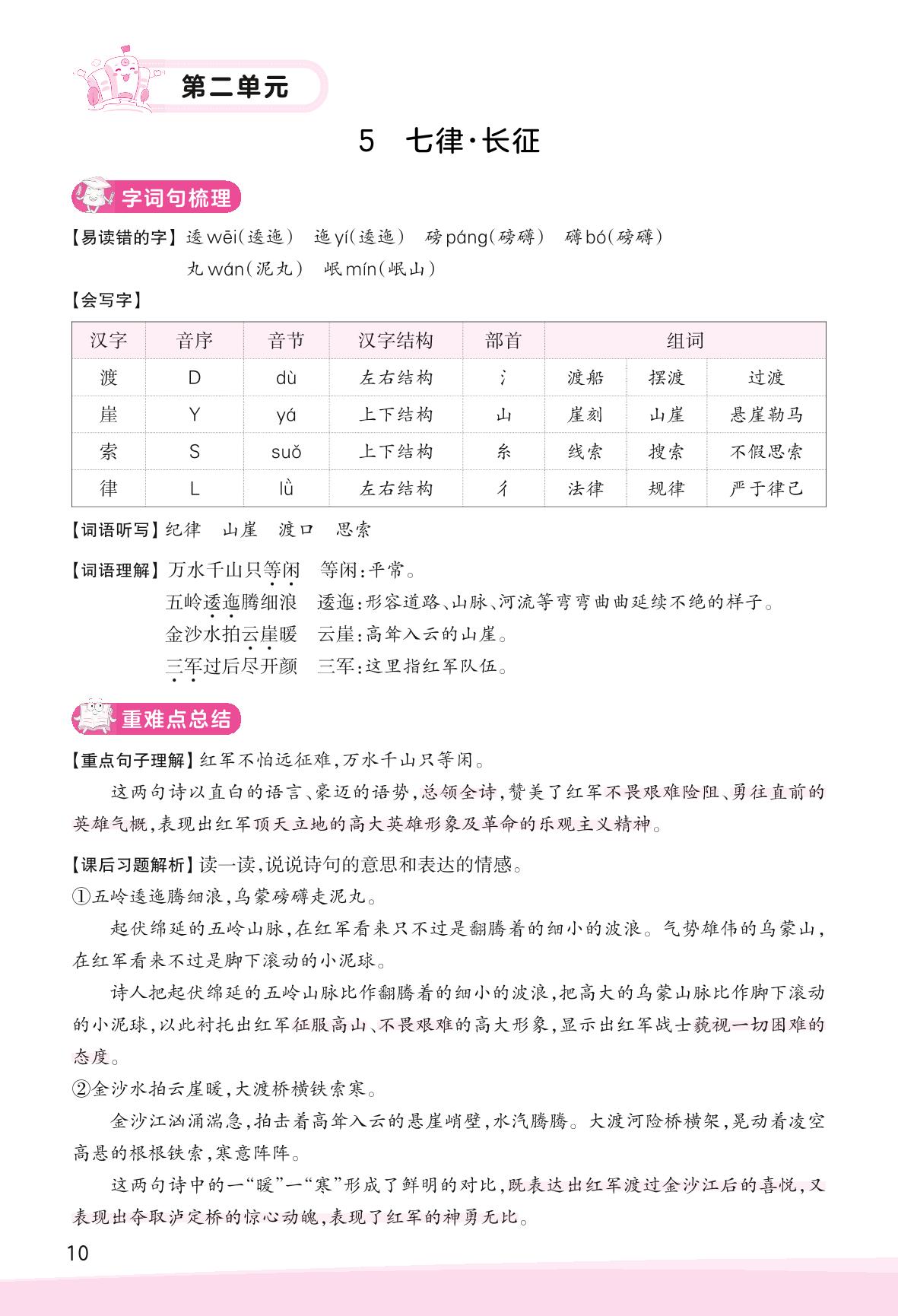 2023上册六年级语文人教版 助学手册 第二单元——5 七律·长征