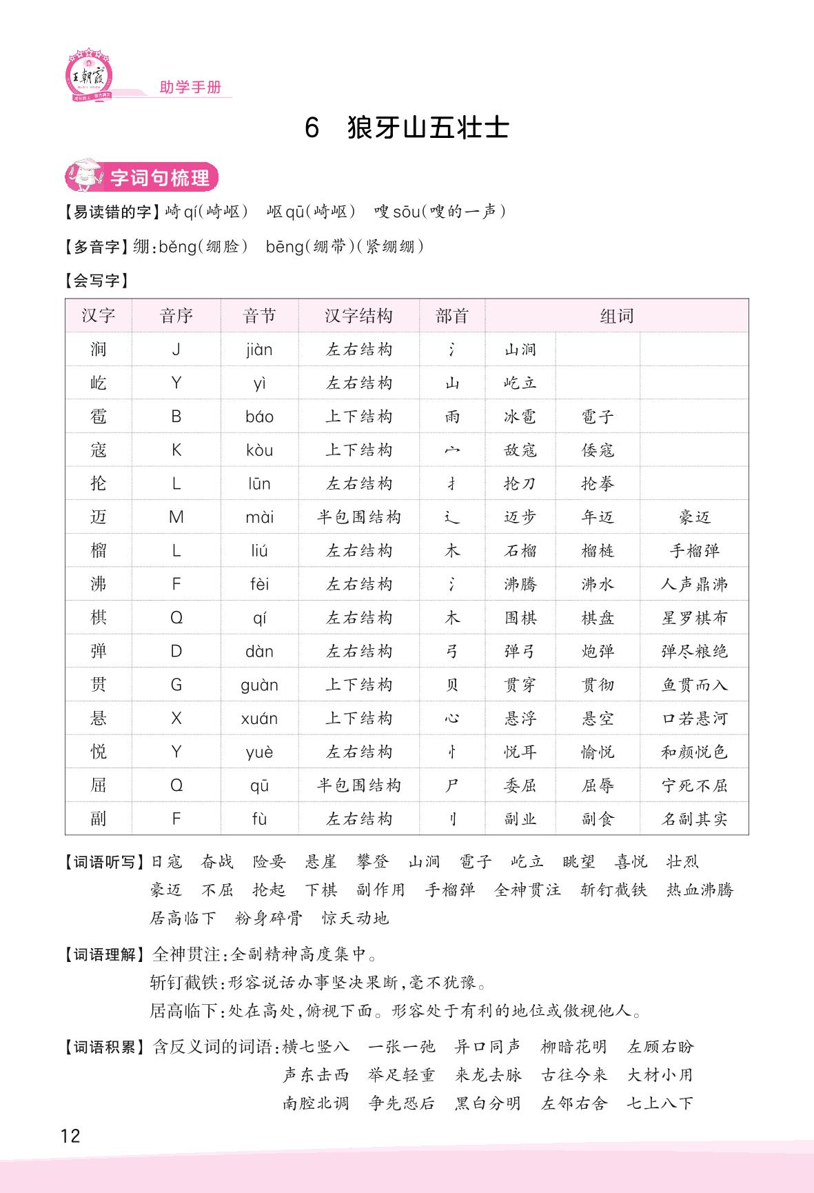 2023上册六年级语文人教版 助学手册 第二单元——6 狼牙山五壮士
