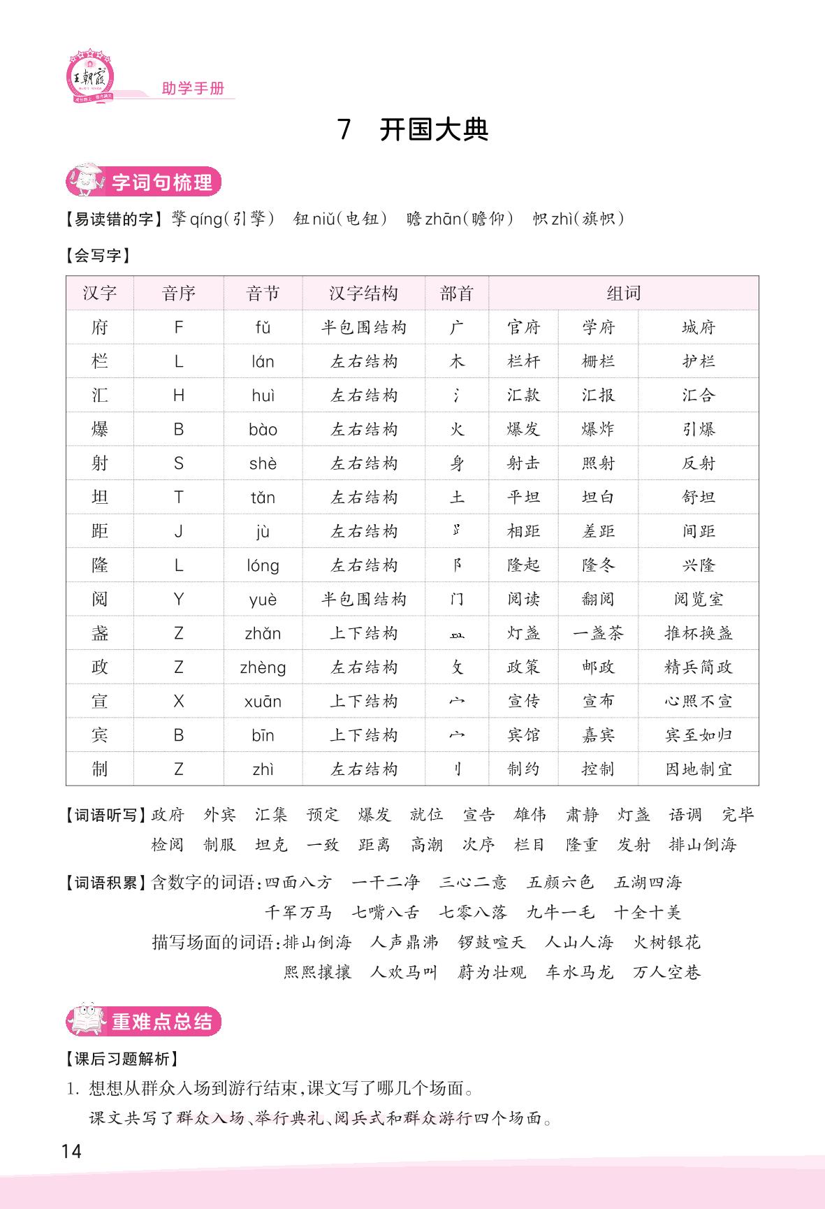 2023上册六年级语文人教版 助学手册 第二单元——7 开国大典