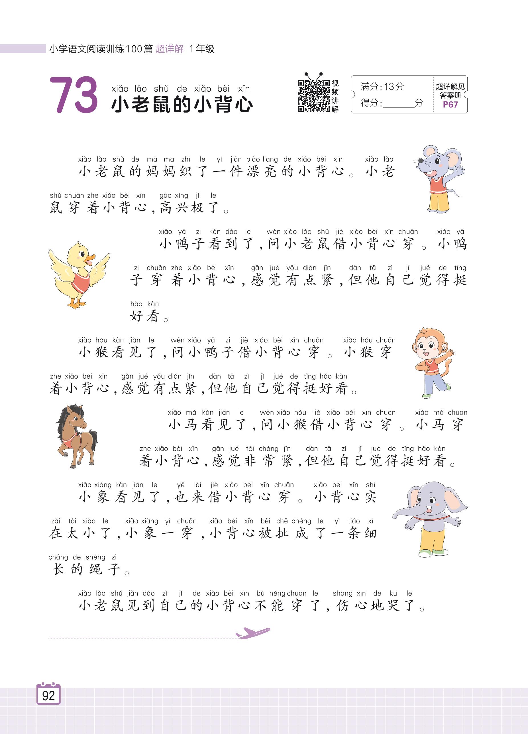 2024全一册一年级语文人教版 专题四 童话故事 73 小老鼠的小背心