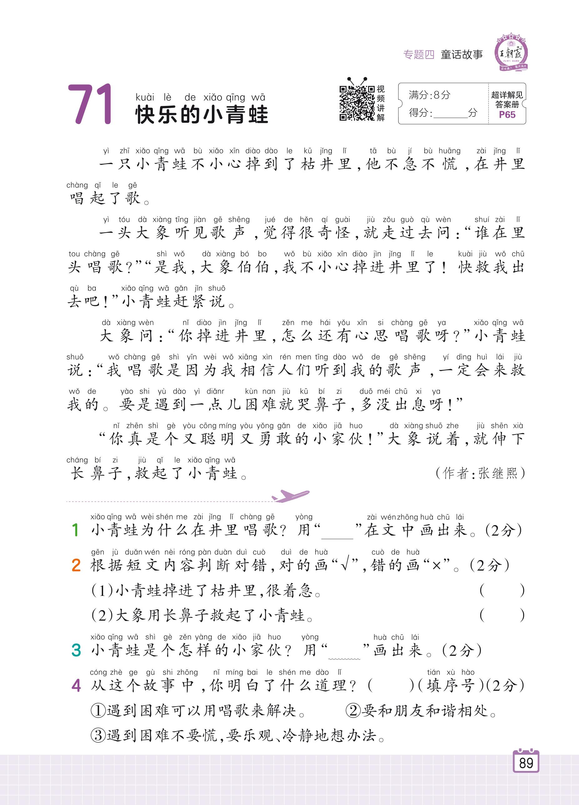 2024全一册一年级语文人教版 专题四 童话故事 71 快乐的小青蛙