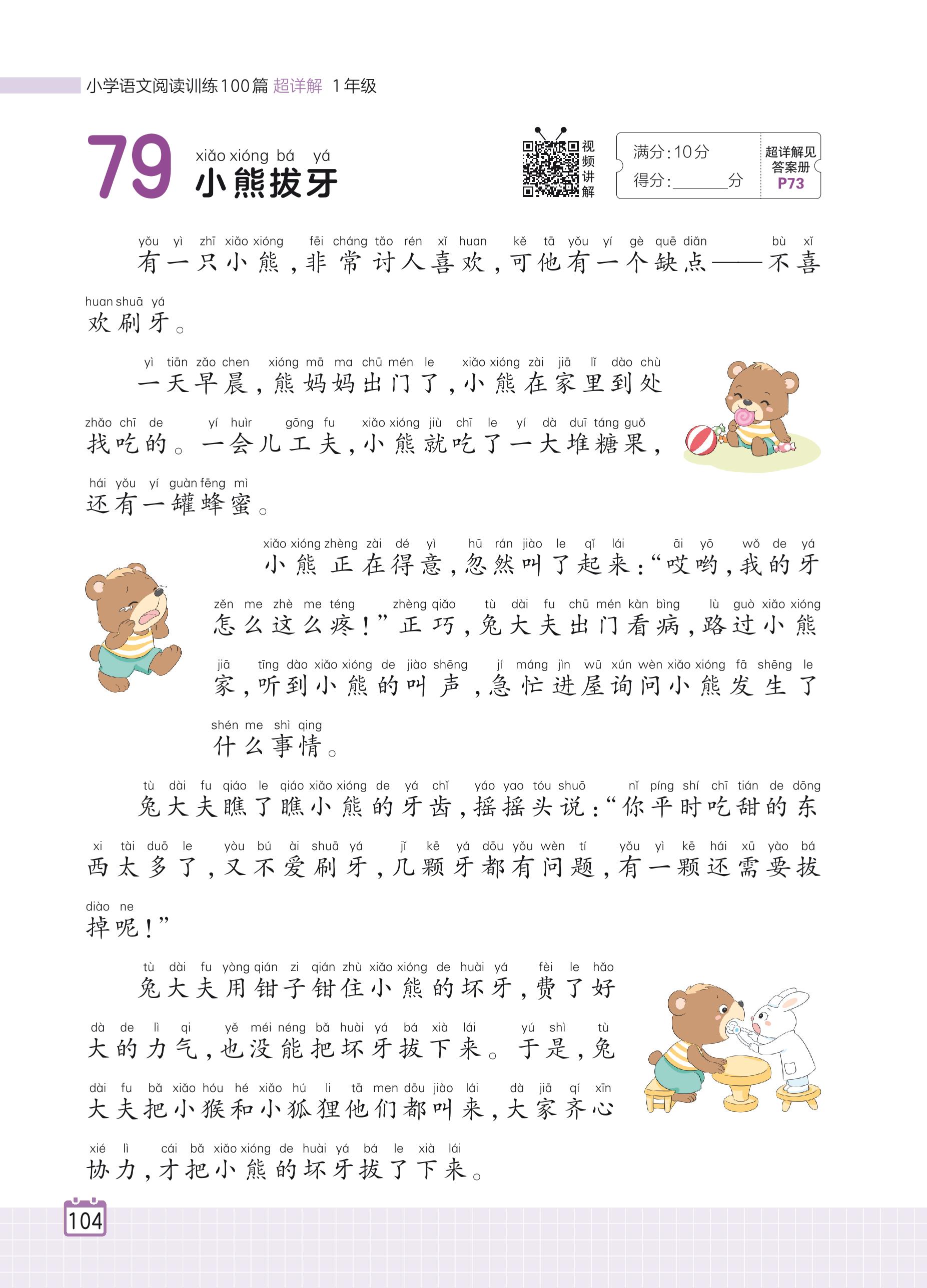2024全一册一年级语文人教版 专题四 童话故事 79 小熊拔牙