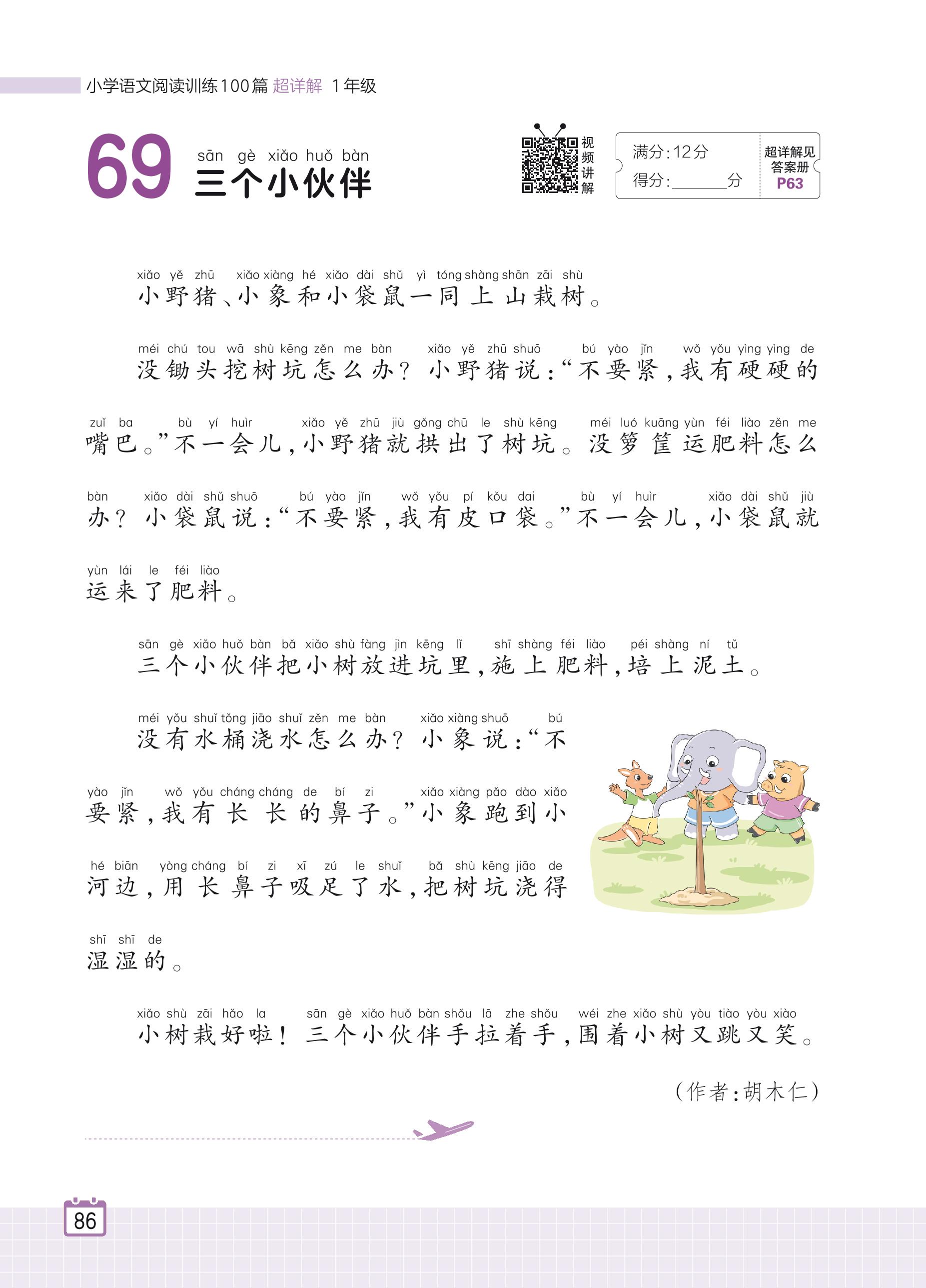 2024全一册一年级语文人教版 专题四 童话故事 69 三个小伙伴