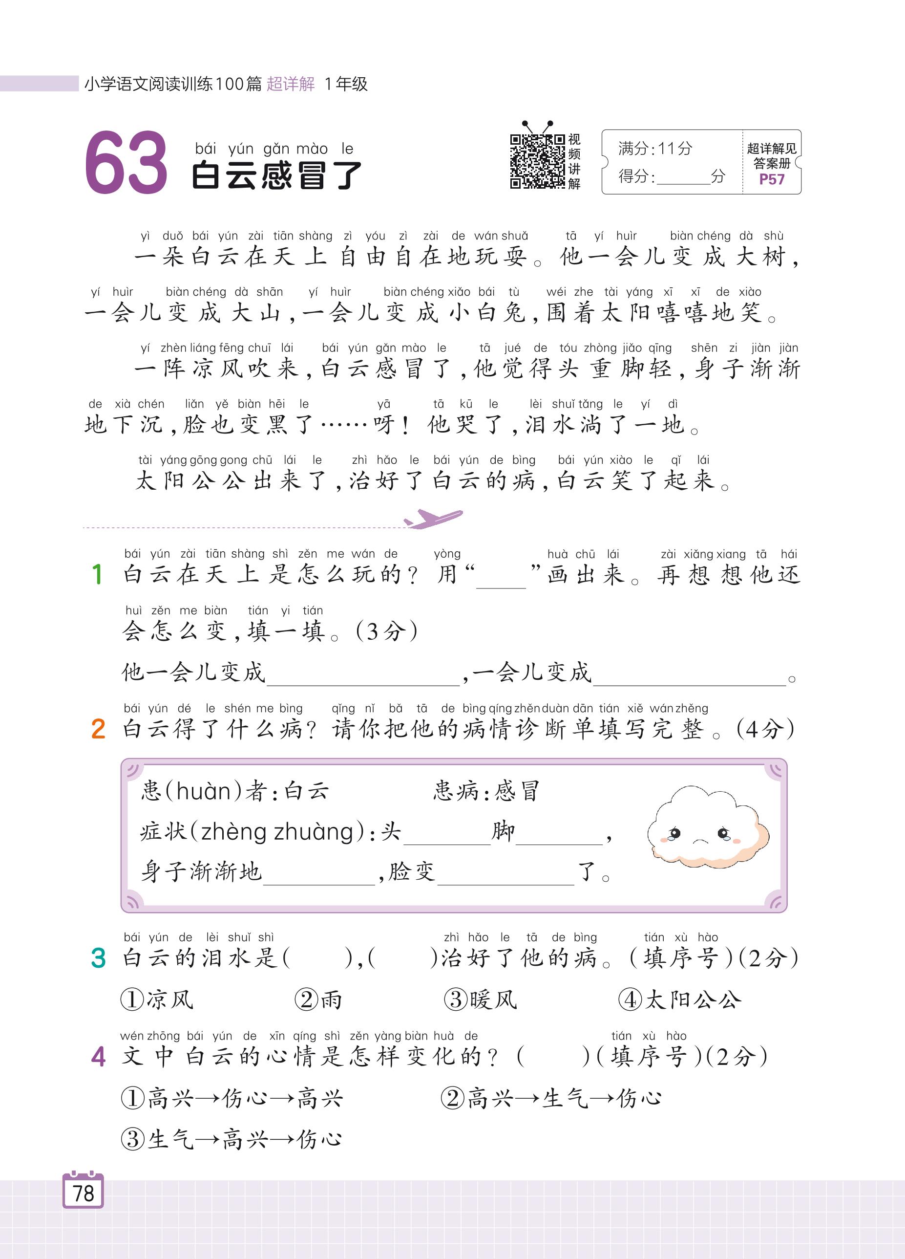 2024全一册一年级语文人教版 专题四 童话故事 63 白云感冒了