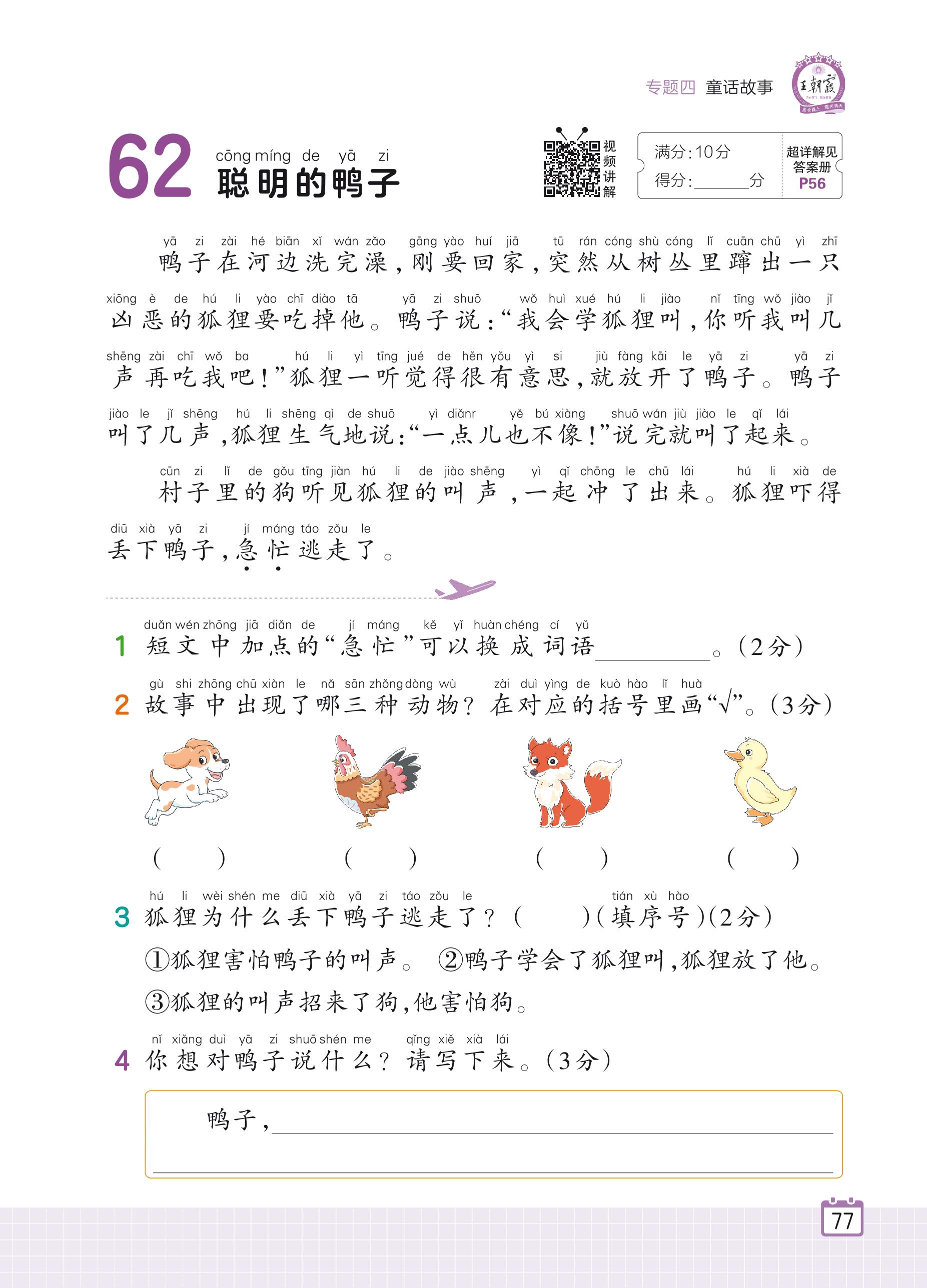 2024全一册一年级语文人教版 专题四 童话故事 62 聪明的鸭子