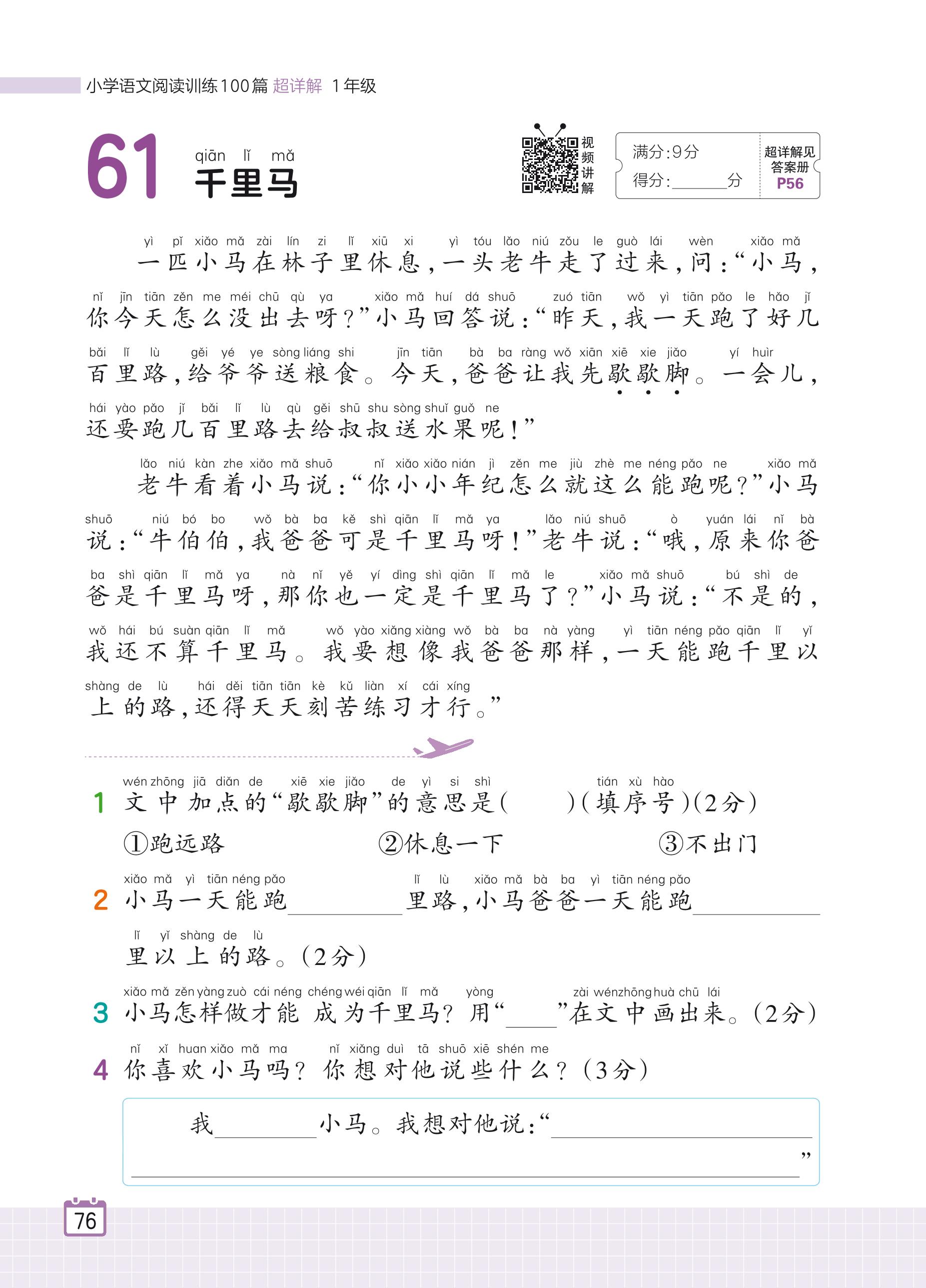 2024全一册一年级语文人教版 专题四 童话故事 61 千里马