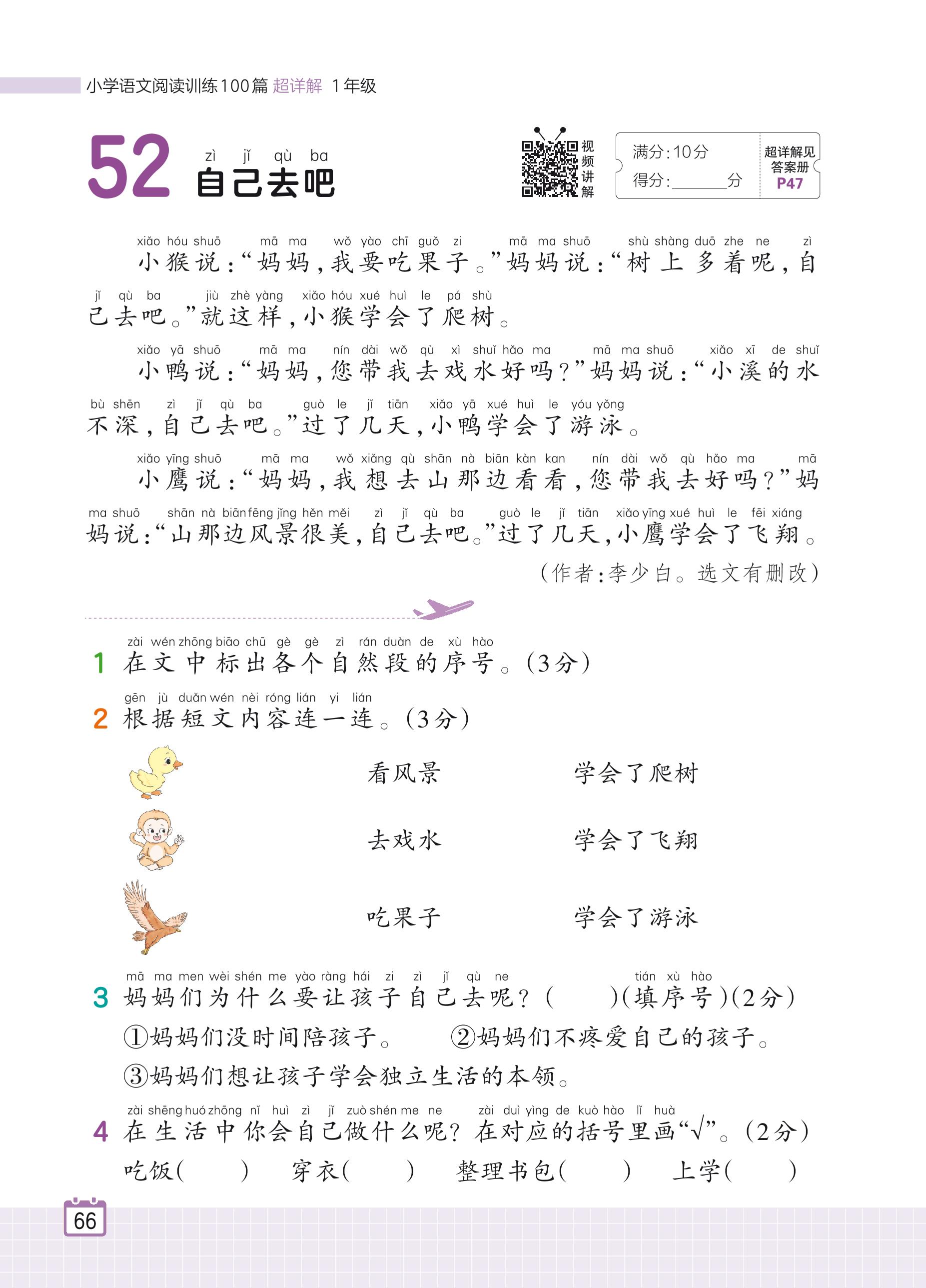 2024全一册一年级语文人教版 专题四 童话故事 52 自己去吧