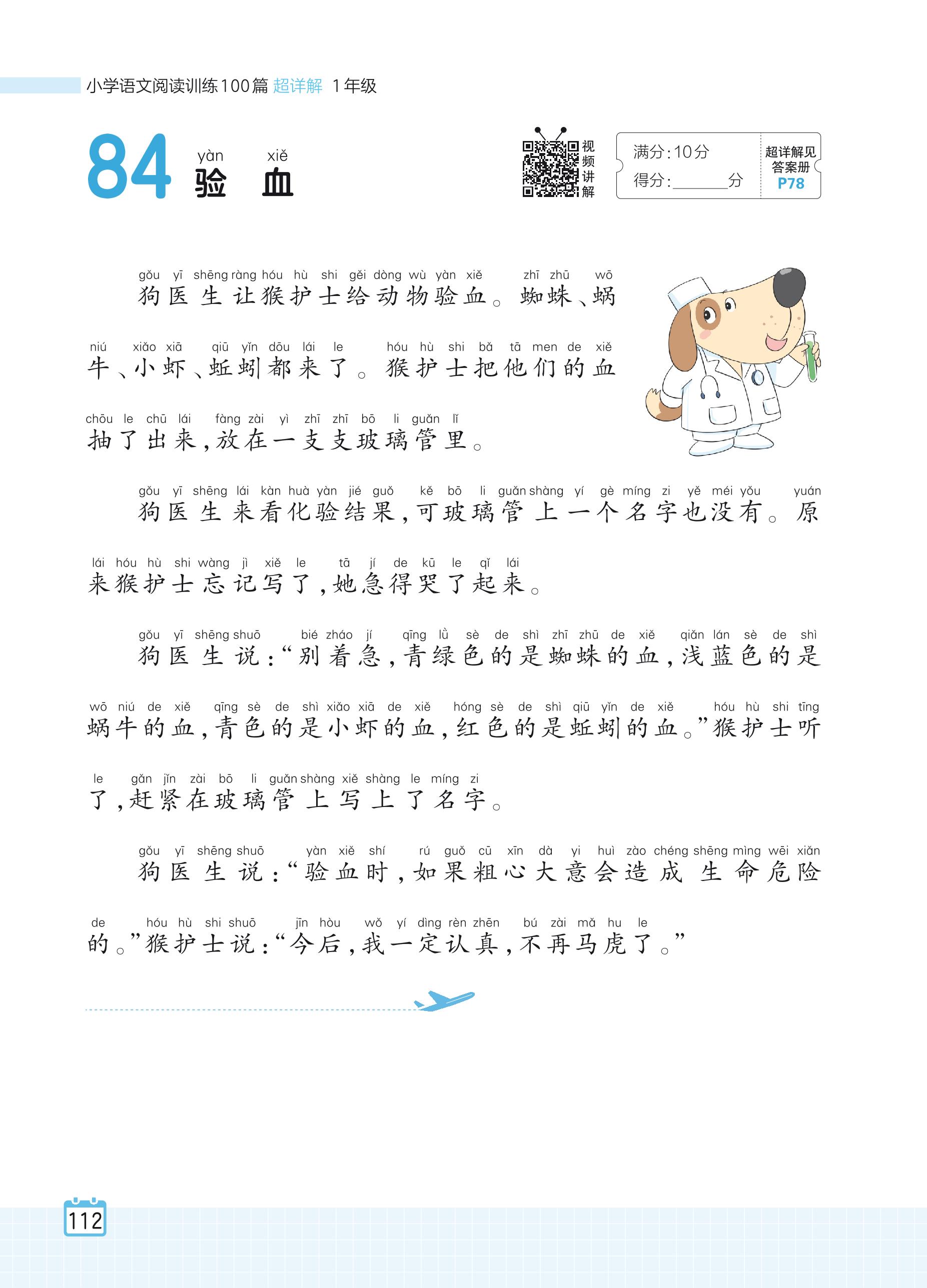 2024全一册一年级语文人教版 专题五 寓言故事 84 验血