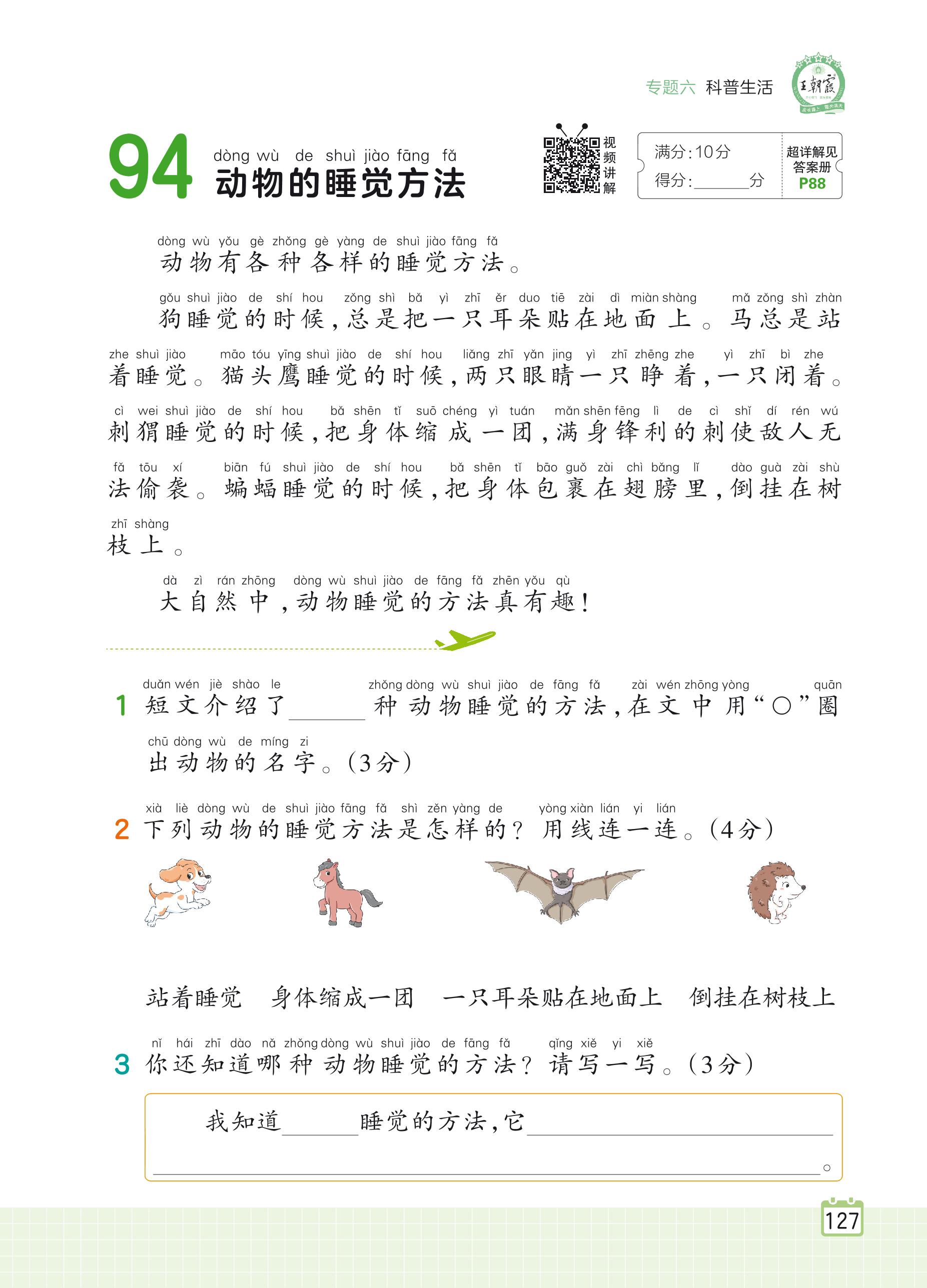 2024全一册一年级语文人教版 专题六 科普生活 94 动物的睡觉方法
