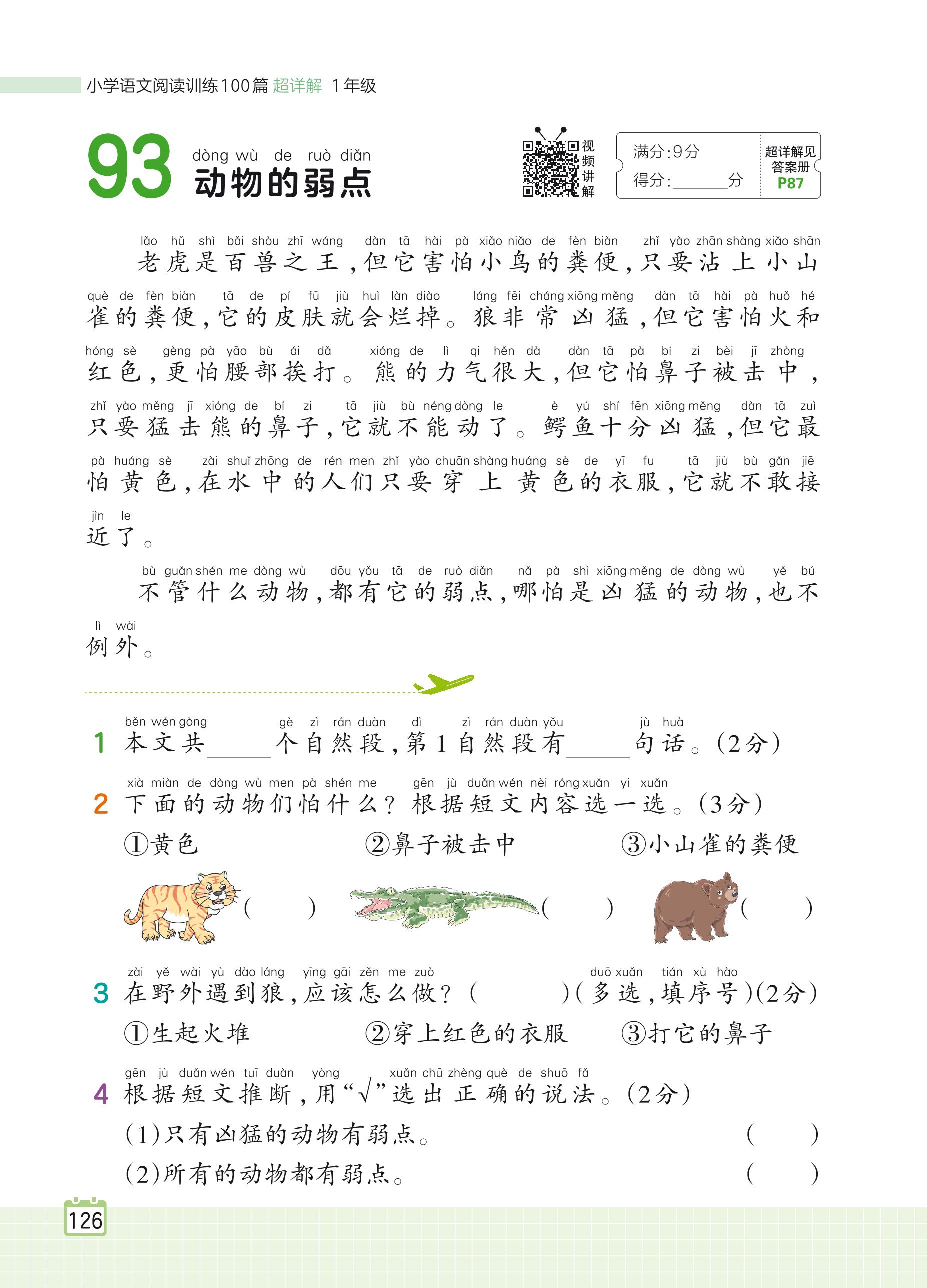 2024全一册一年级语文人教版 专题六 科普生活 93 动物的弱点