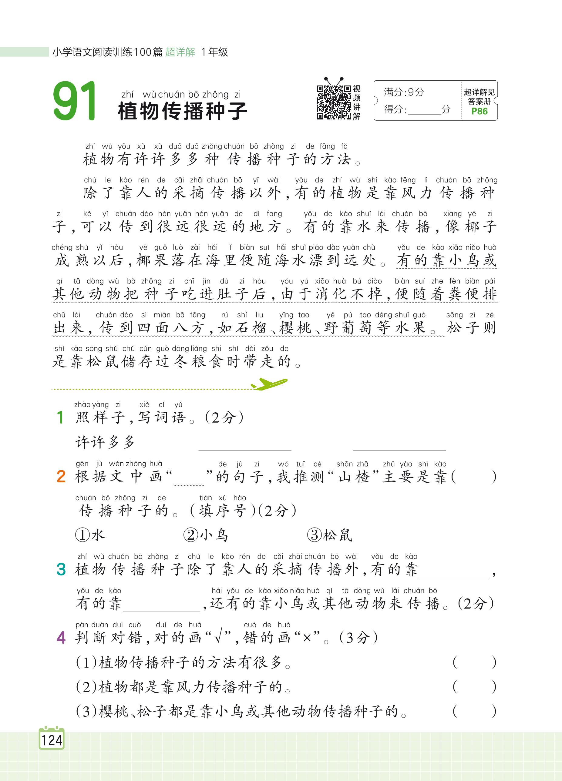 2024全一册一年级语文人教版 专题六 科普生活 91 植物传播种子