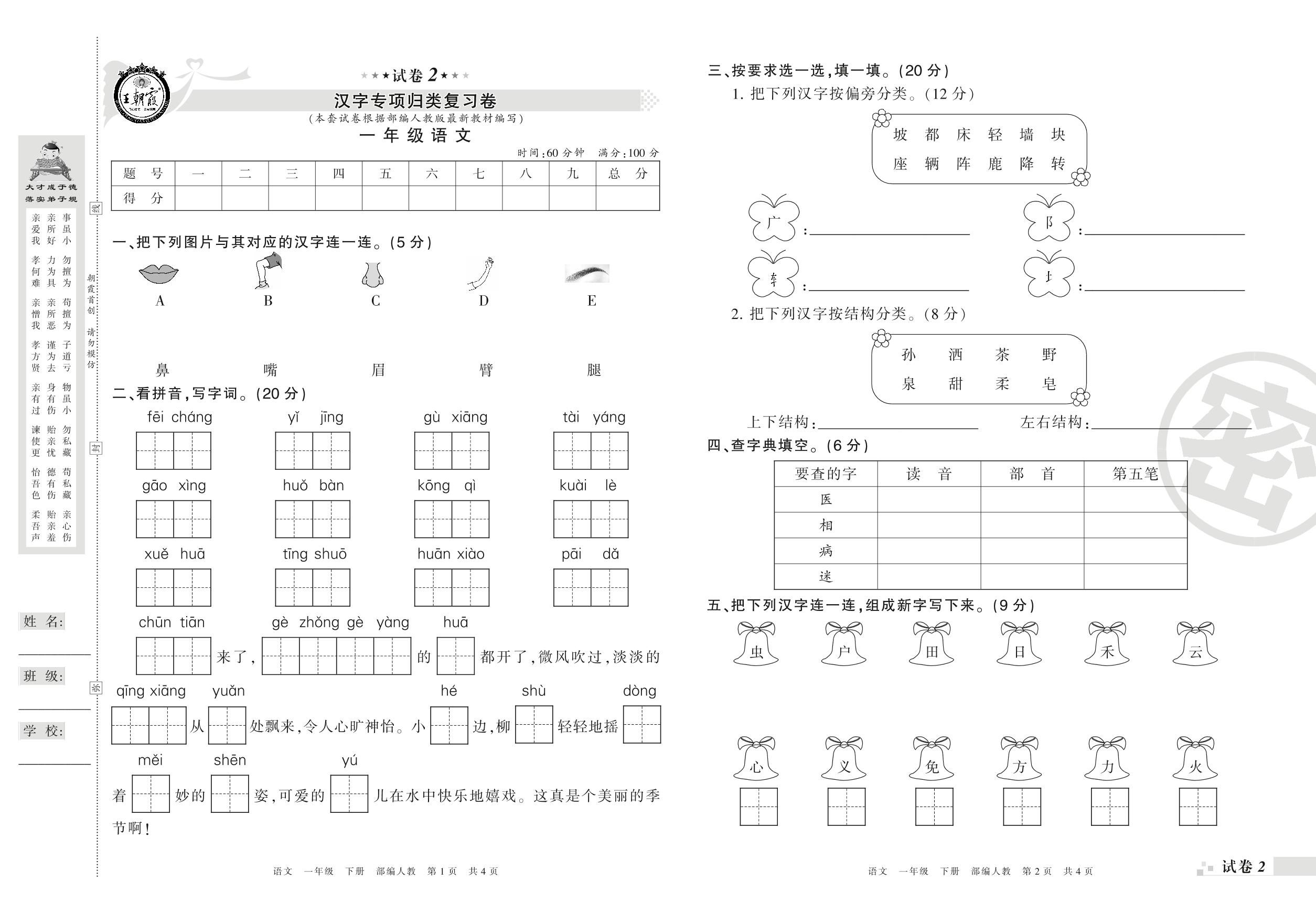 王朝霞期末专项卷——汉字专项归类复习卷一年级下册语文(人教版)_R210731191057【2】