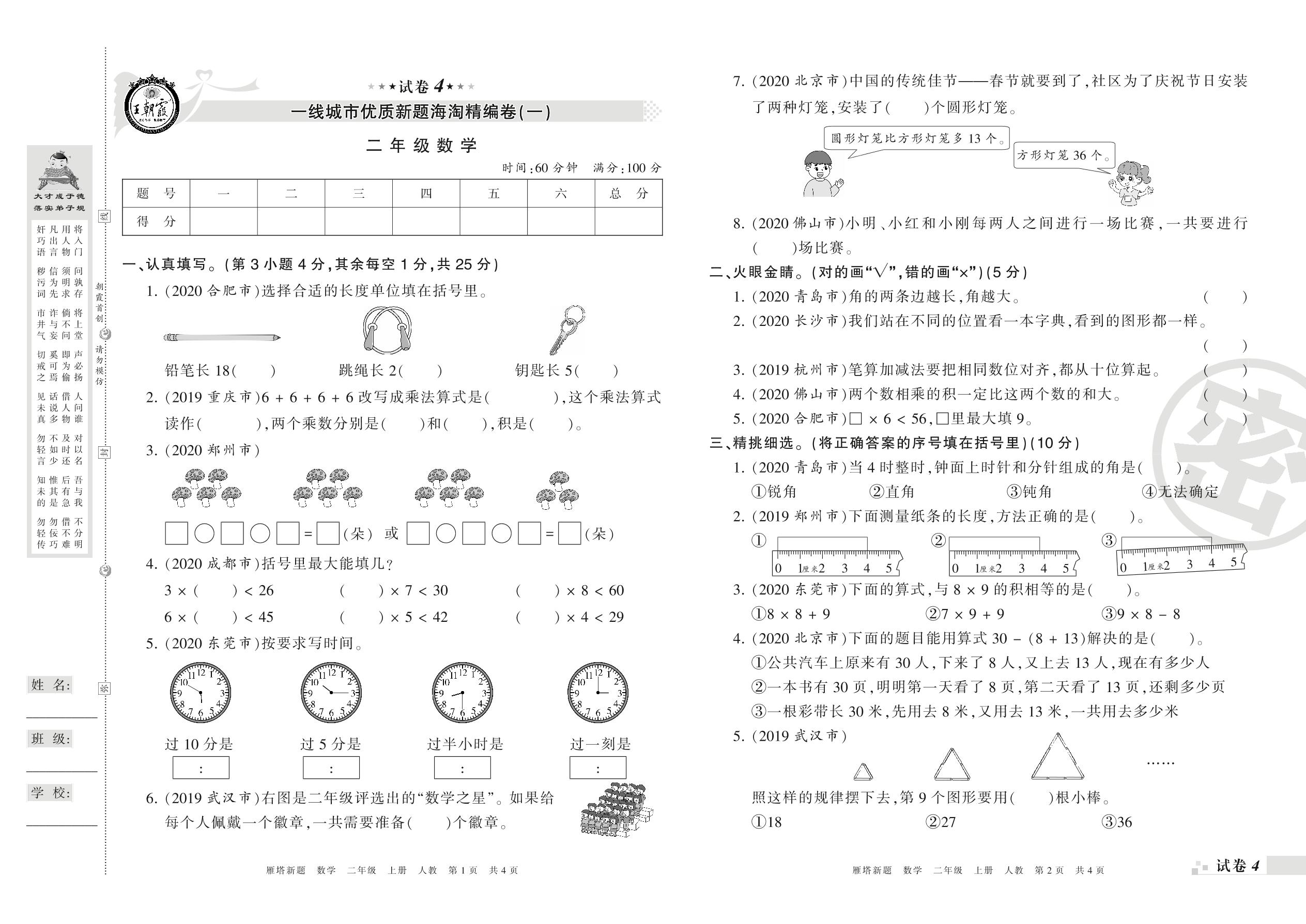 王朝霞海淘期末精编卷二年级上册数学(人教版)【4】