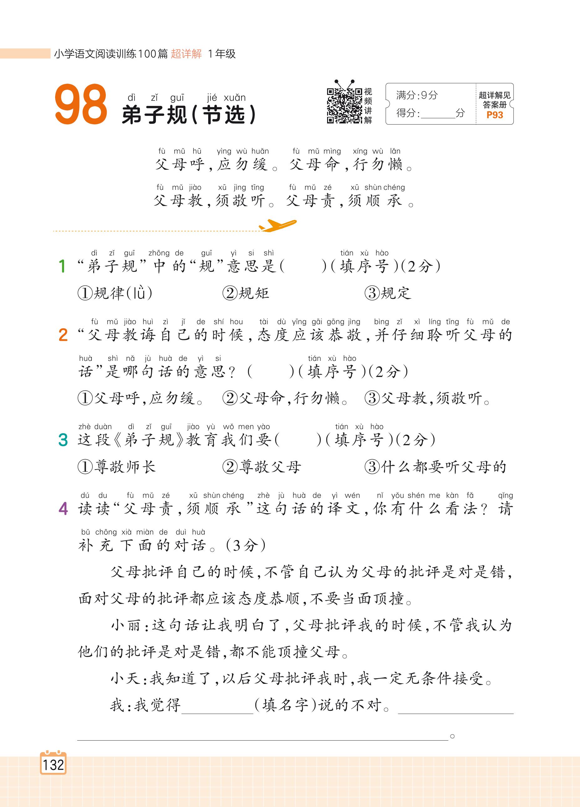 2024全一册一年级语文人教版 专题七 文化经典 98 弟子规(节选)