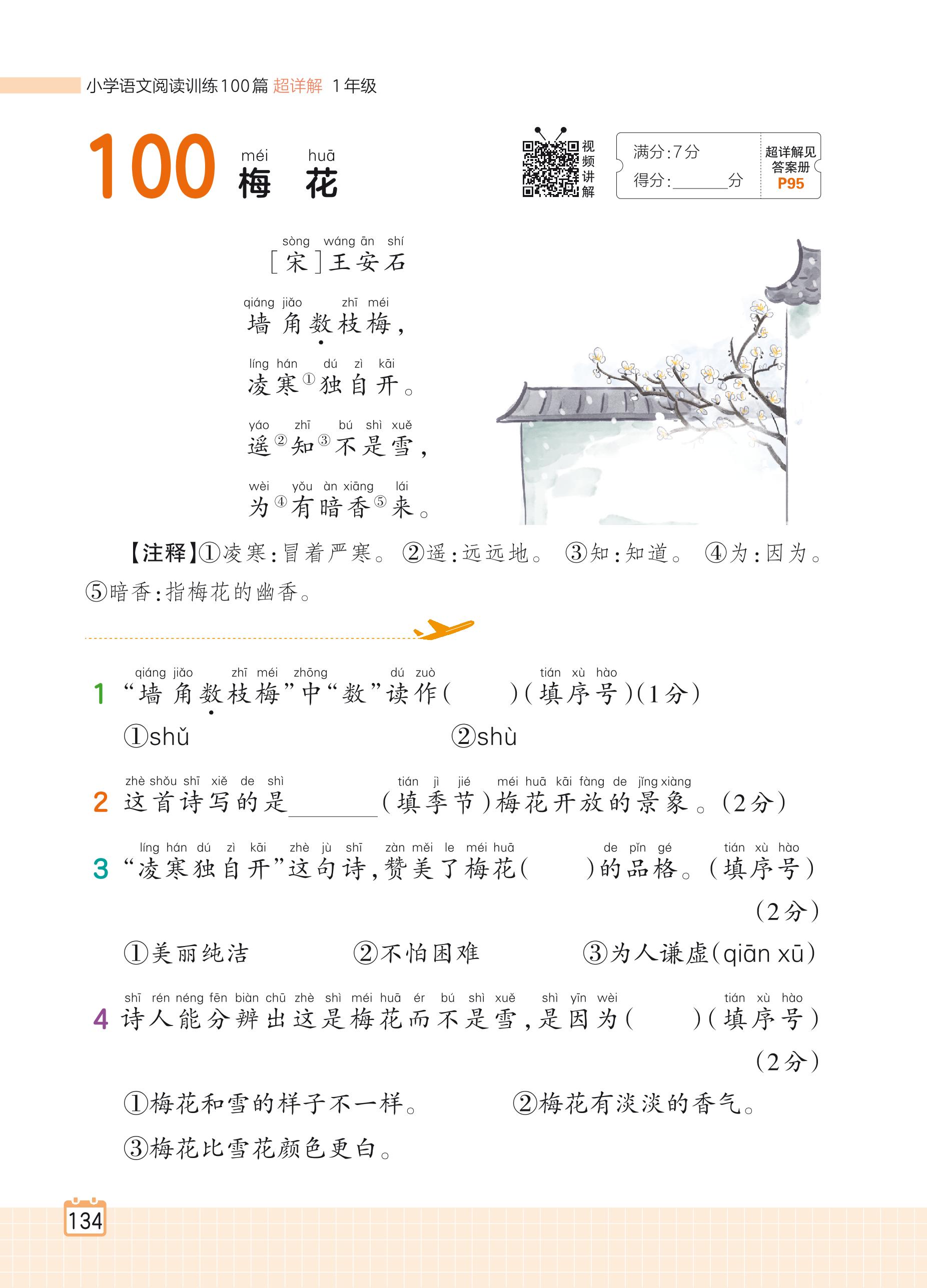 2024全一册一年级语文人教版 专题七 文化经典 100 梅花