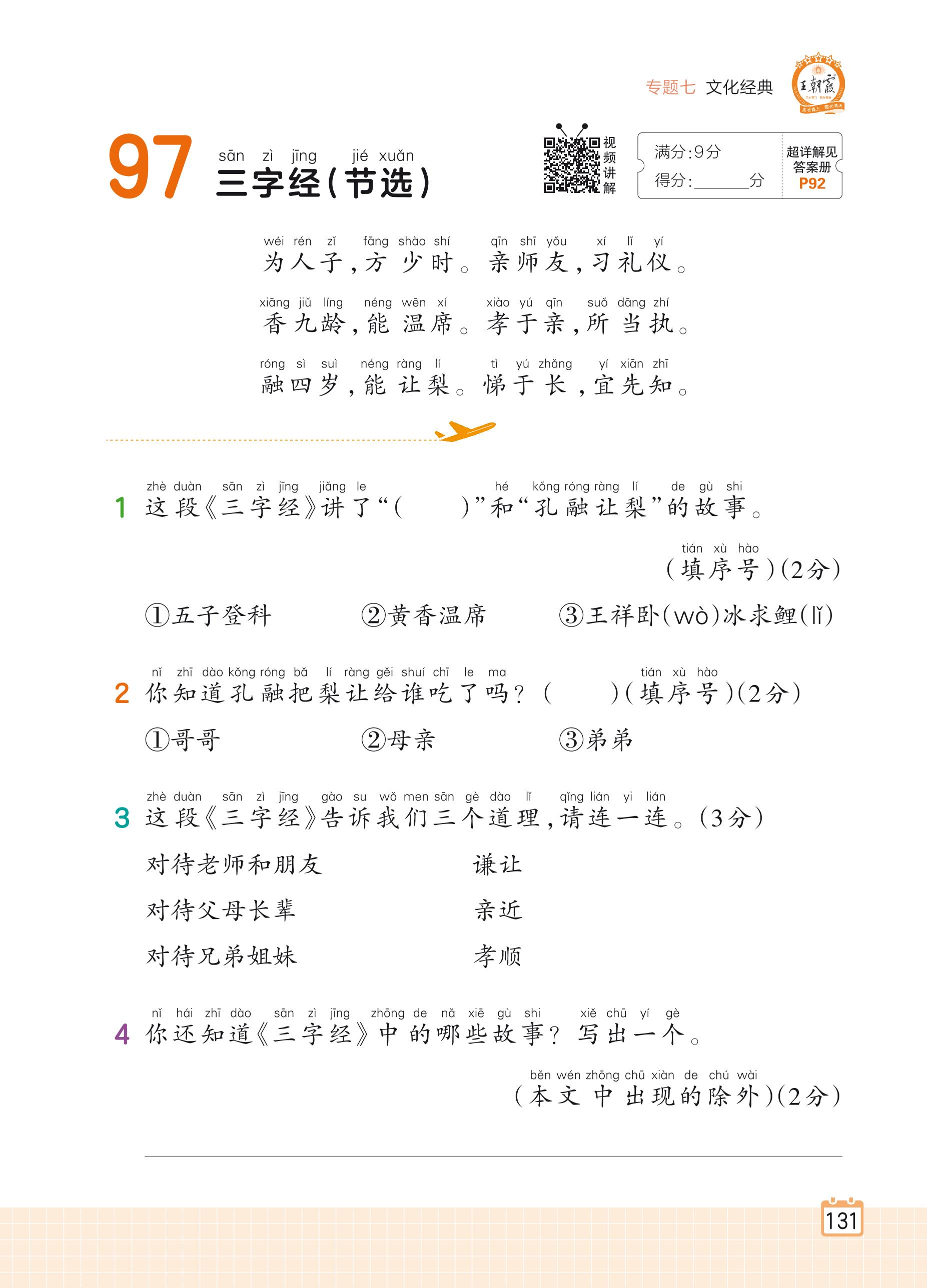 2024全一册一年级语文人教版 专题七 文化经典 97 三字经(节选)
