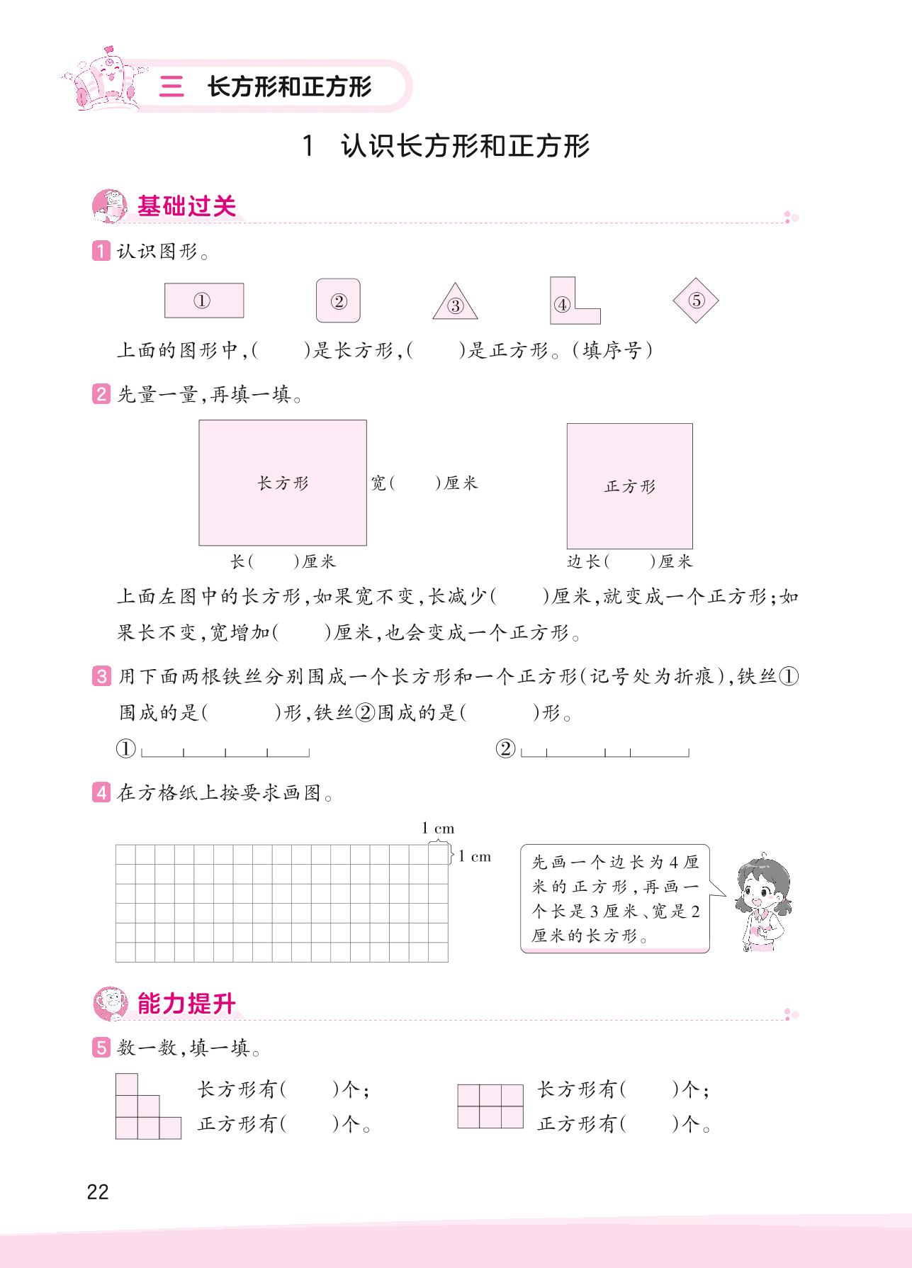 2023上册三年级数学苏教版 三 长方形和正方形——1 认识长方形和正方形