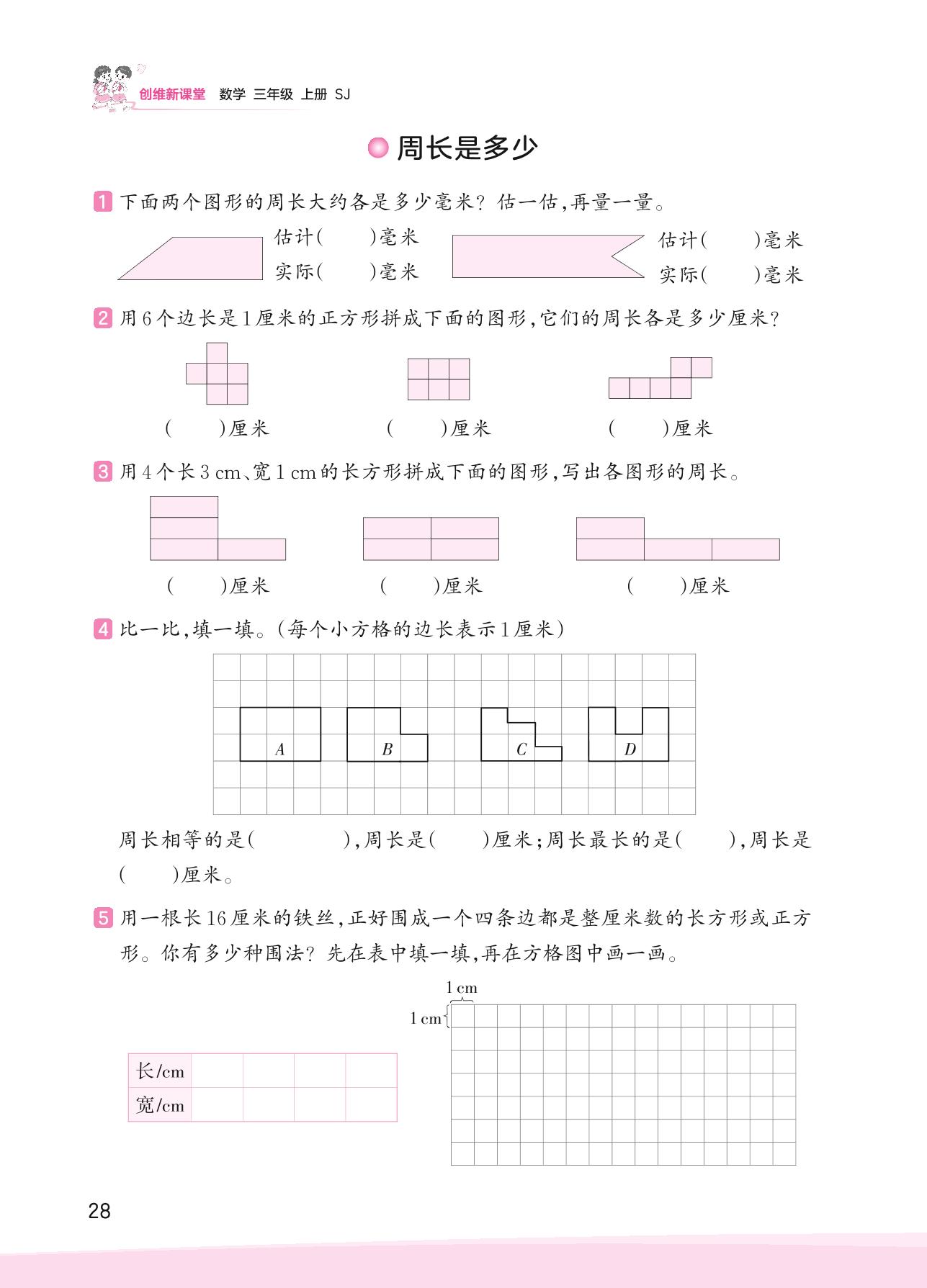 2023上册三年级数学苏教版 三 长方形和正方形——周长是多少