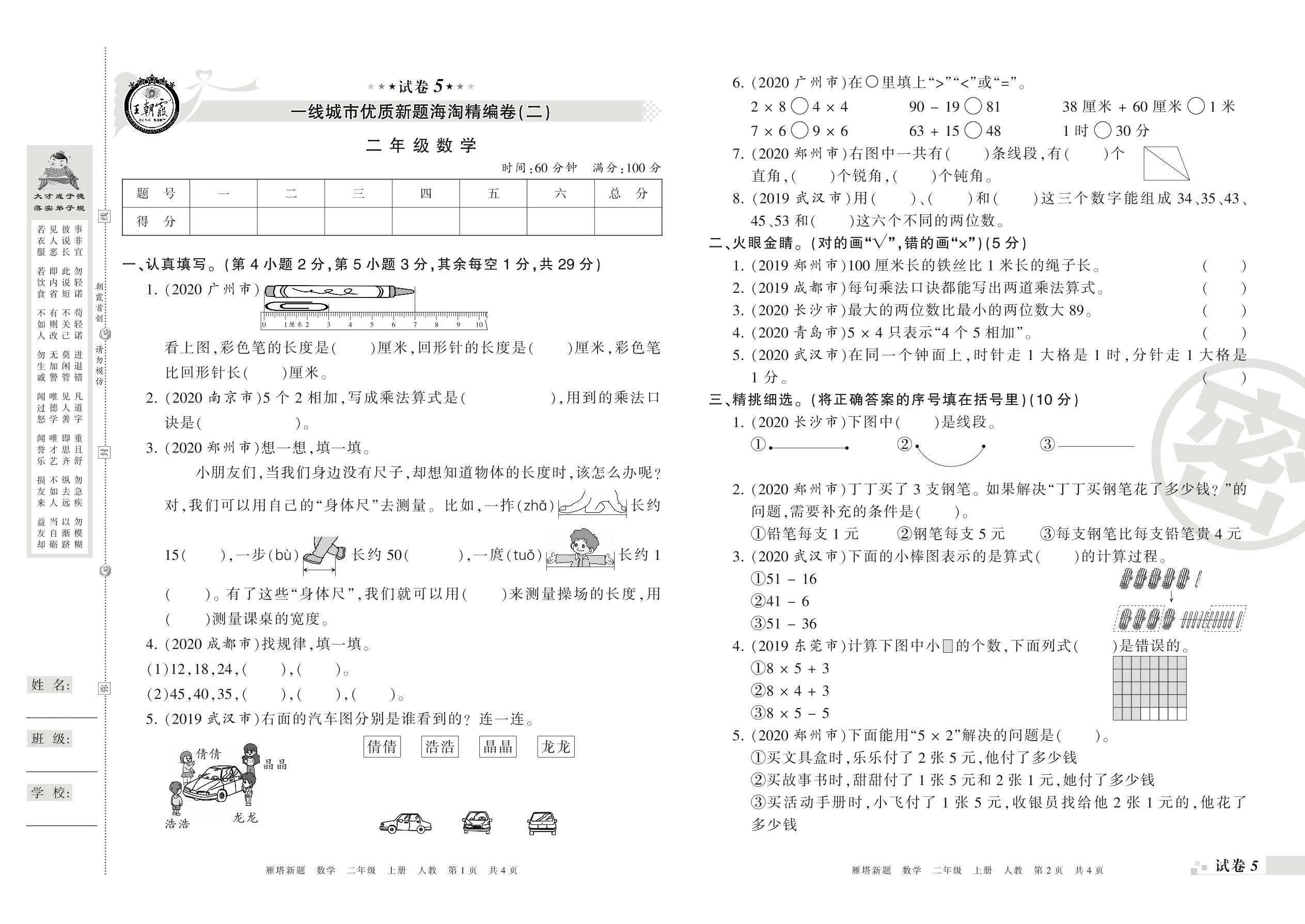 王朝霞海淘期末精编卷二年级上册数学(人教版)【5】