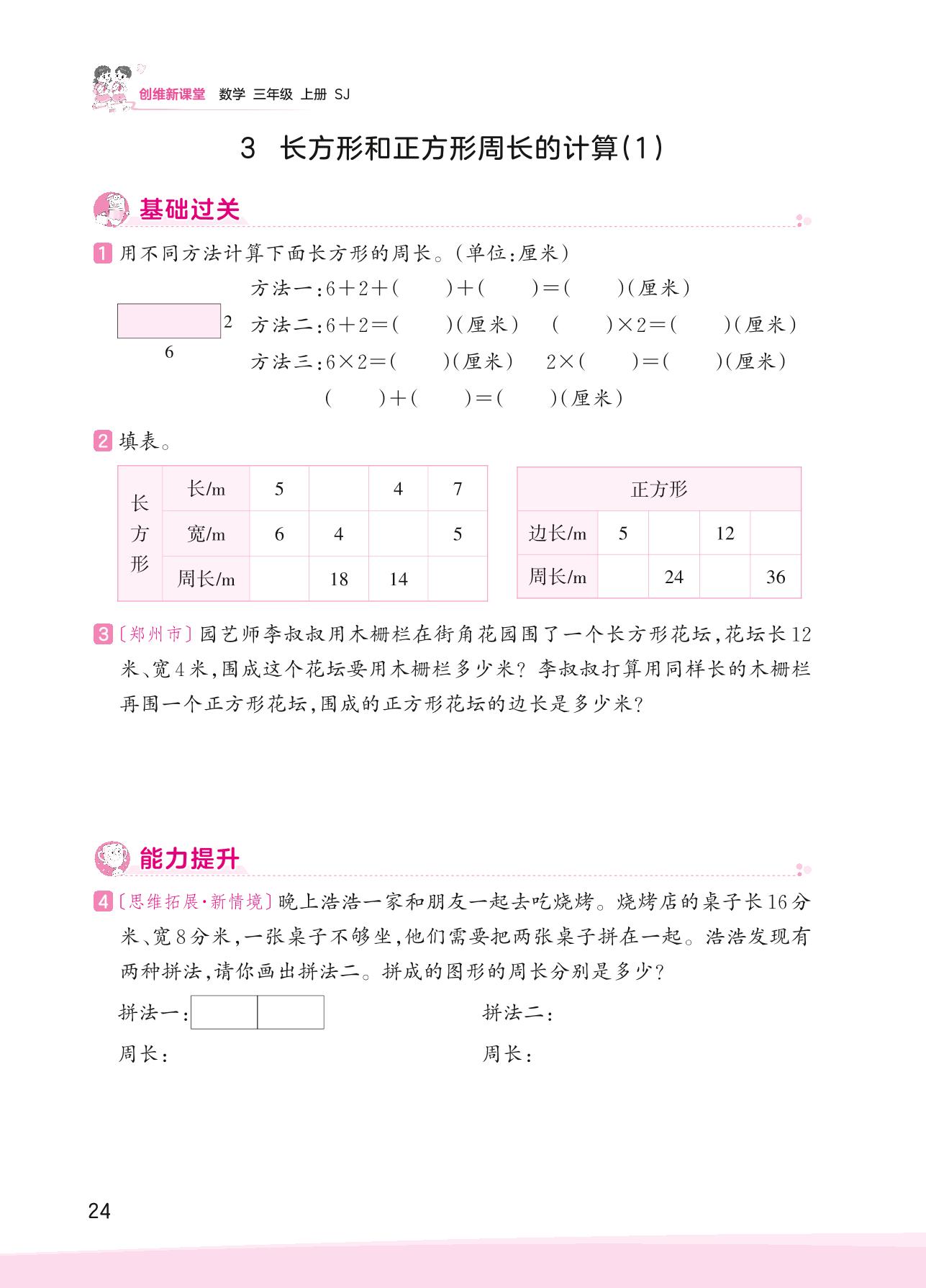 2023上册三年级数学苏教版 三 长方形和正方形——3 长方形和正方形周长的计算(1)