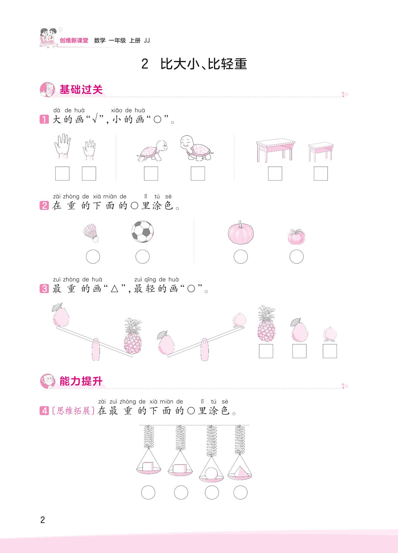 2023上册一年级数学冀教版 一 比一比——2 比大小、比轻重