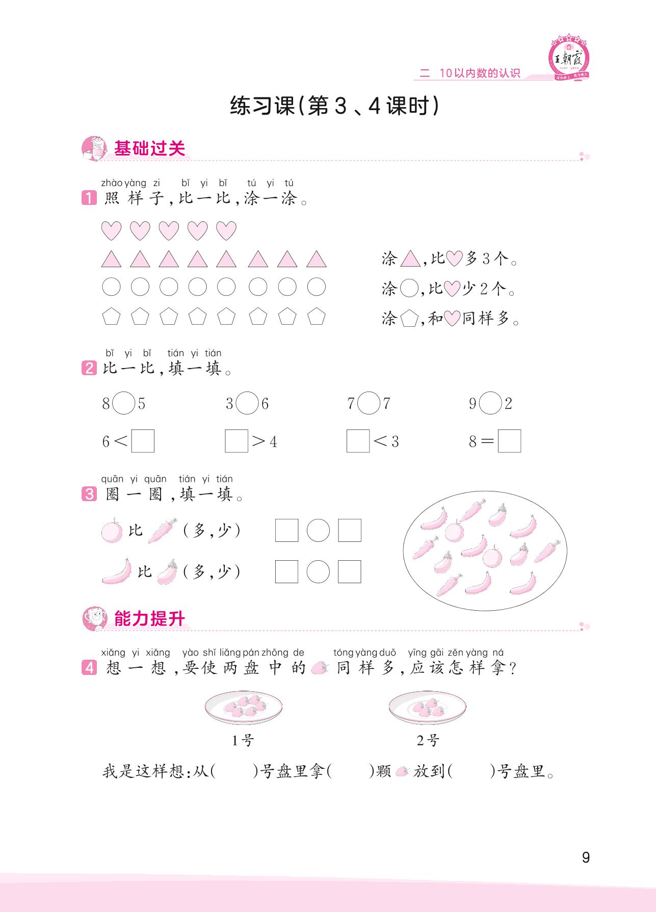 2023上册一年级数学冀教版 二 10以内数的认识——练习课(第3、4课时)
