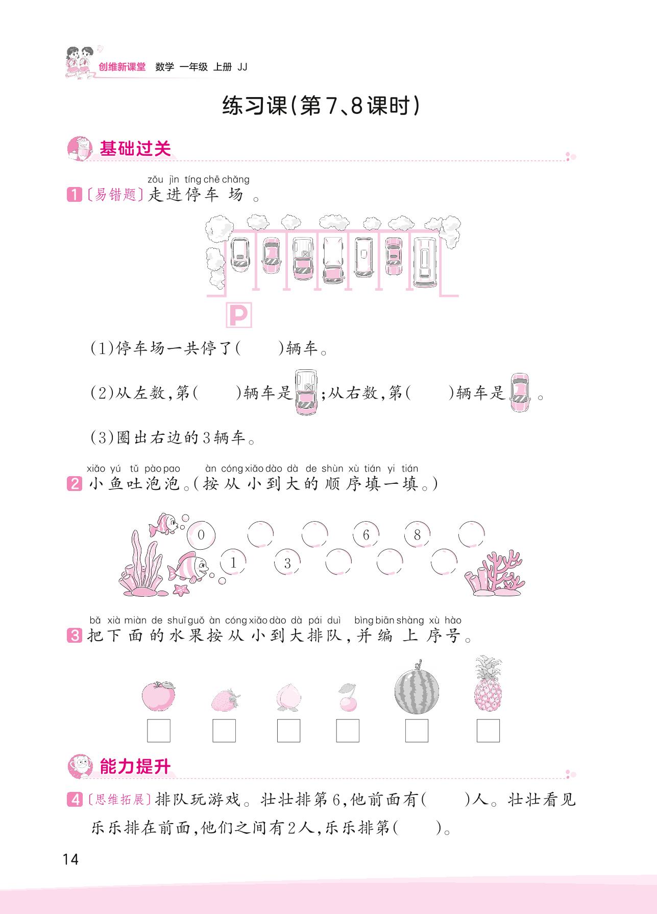 2023上册一年级数学冀教版 二 10以内数的认识——练习课(第7、8课时)