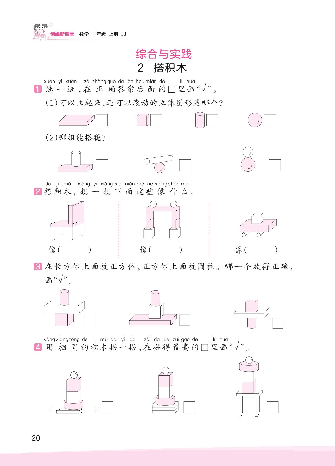 2023上册一年级数学冀教版 三 认识图形(一)——2 搭积木