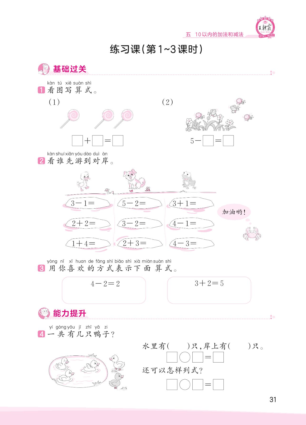2023上册一年级数学冀教版 五 10以内的加法和减法——练习课(第1~3课时)