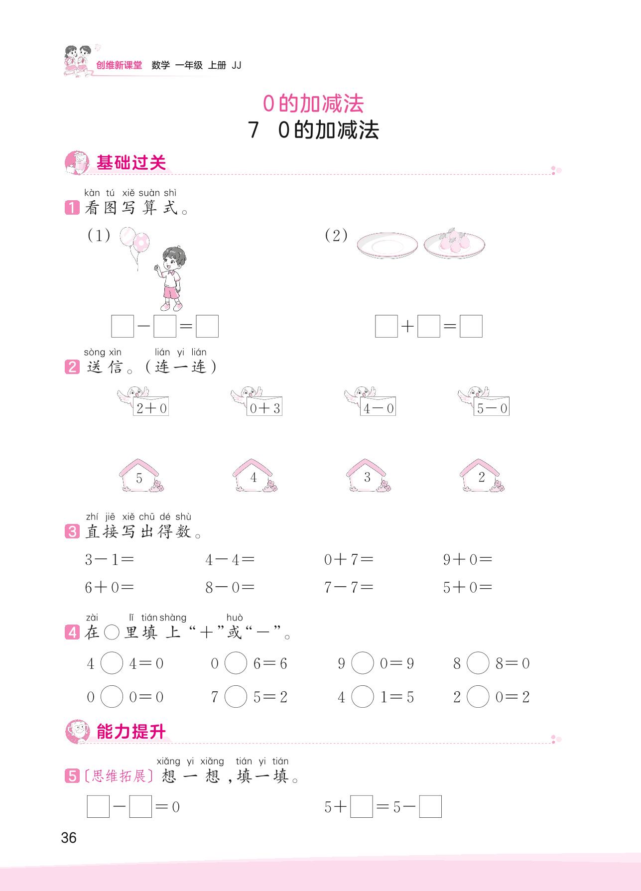 2023上册一年级数学冀教版 五 10以内的加法和减法——7 0的加减法