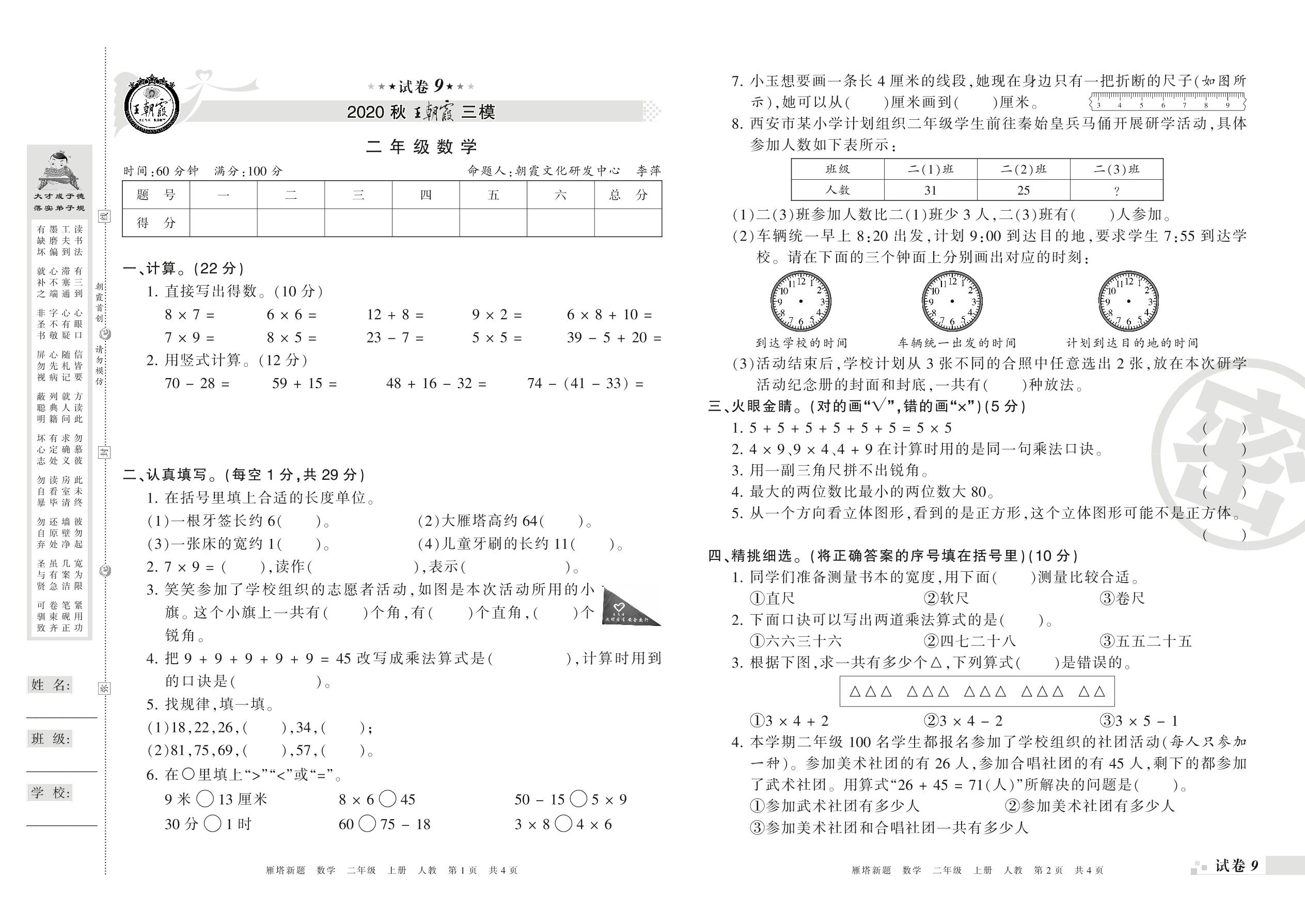 王朝霞期末模拟卷二年级上册数学(人教版)_R21080384033【9】