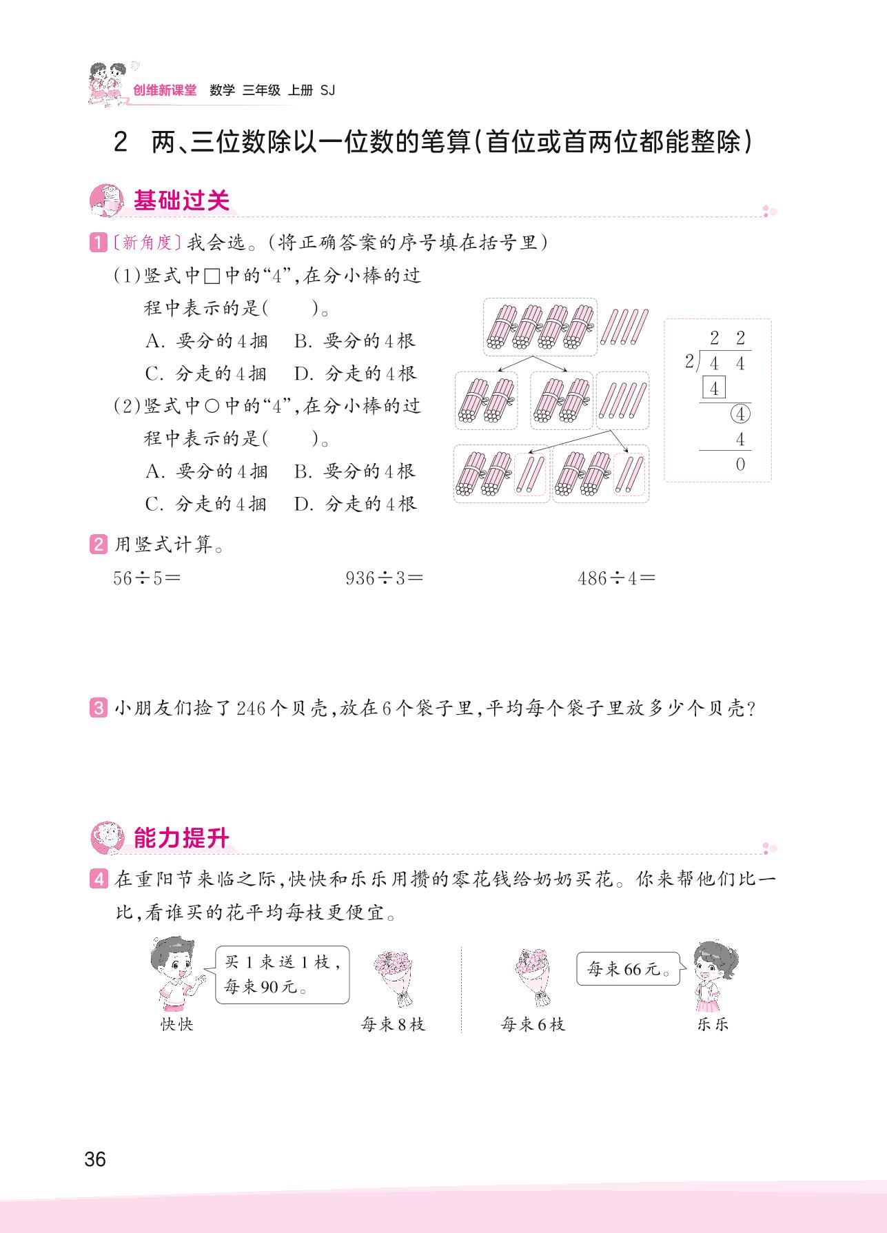 2023上册三年级数学苏教版 四 两、三位数除以一位数——2 两、三位数除以一位数的笔算(首位或首两位都能整除)