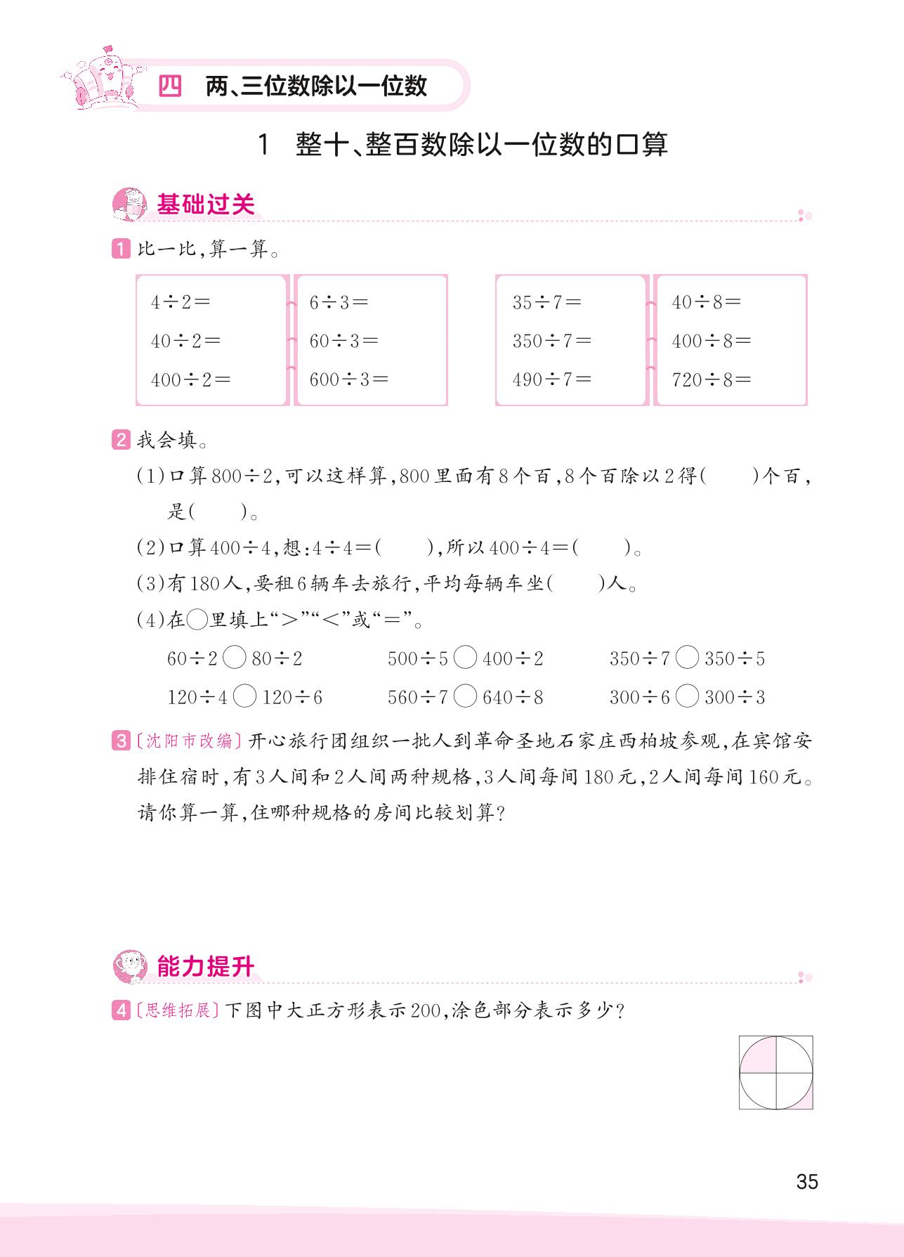 2023上册三年级数学苏教版 四 两、三位数除以一位数——1 整十、整百数除以一位数的口算
