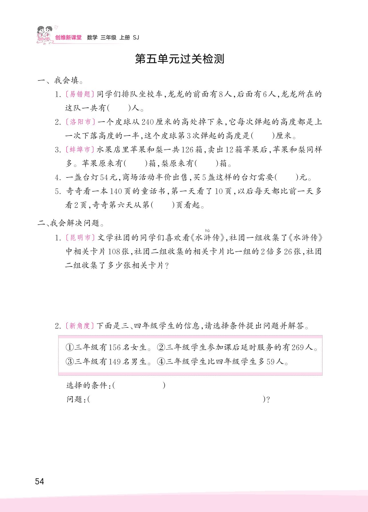 2023上册三年级数学苏教版 第五单元过关检测