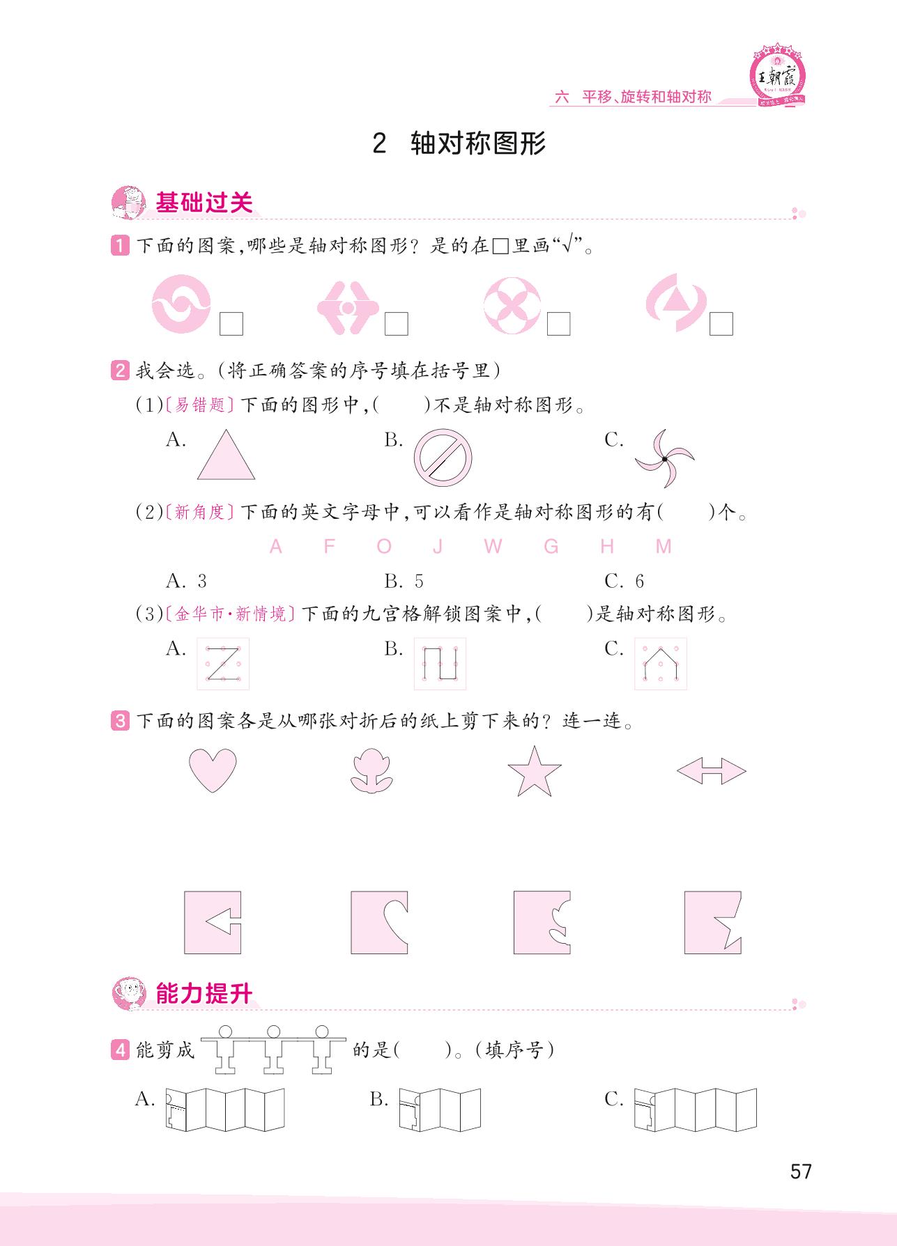 2023上册三年级数学苏教版 六 平移、旋转和轴对称——2 轴对称图形
