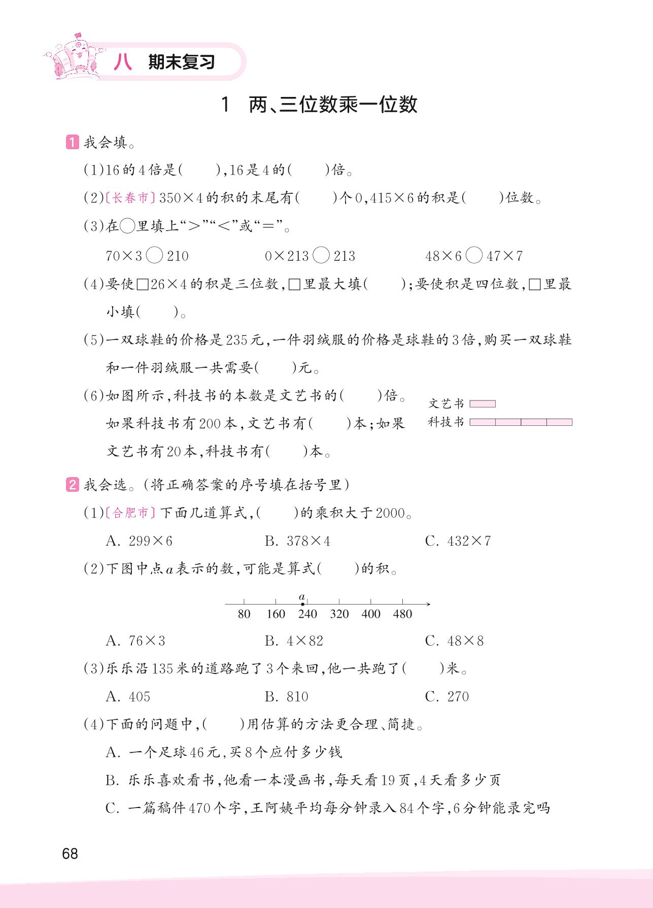 2023上册三年级数学苏教版 八 期末复习——1 两、三位数乘一位数