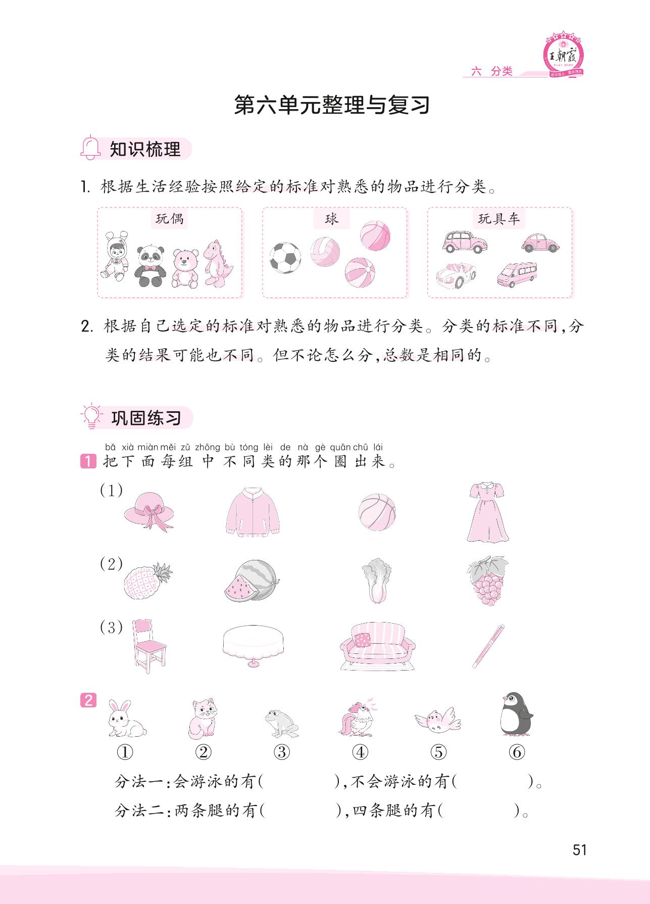 2023上册一年级数学冀教版 第六单元整理与复习