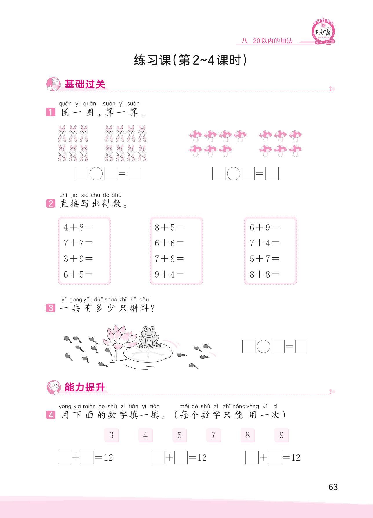 2023上册一年级数学冀教版 八 20以内的加法——练习课(第2~4课时)