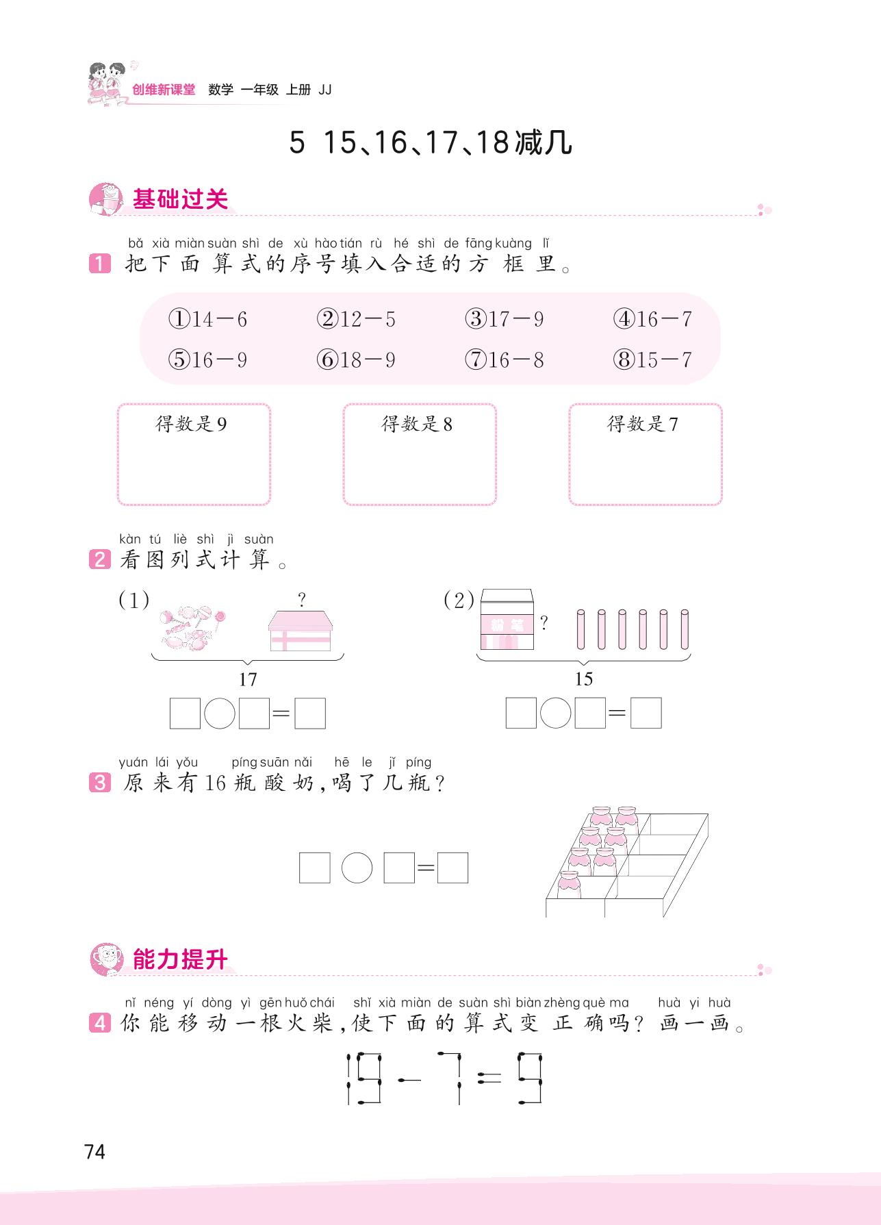 2023上册一年级数学冀教版 九 20以内的减法——5 15、16、17、18减几
