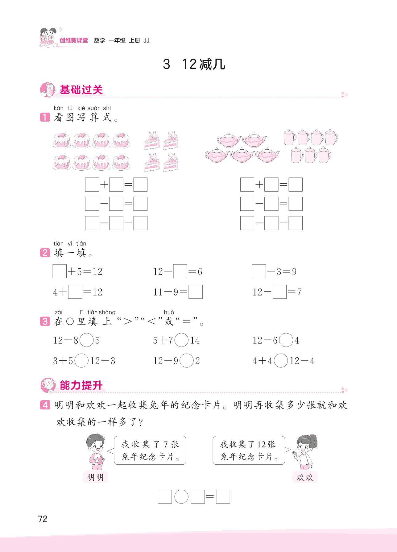 2023上册一年级数学冀教版 九 20以内的减法——3 12减几