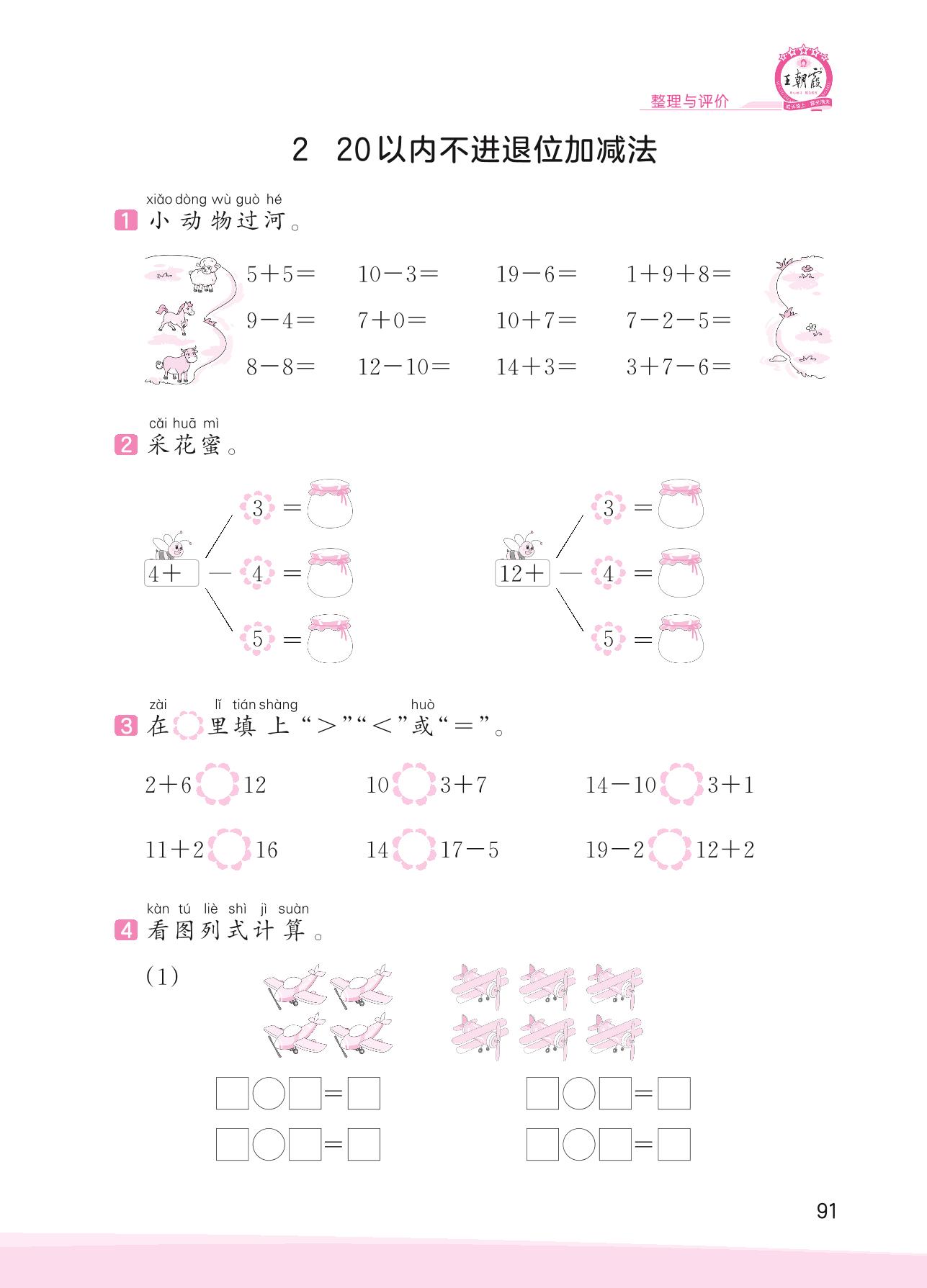 2023上册一年级数学冀教版 整理与评价——2 20以内不进退位加减法