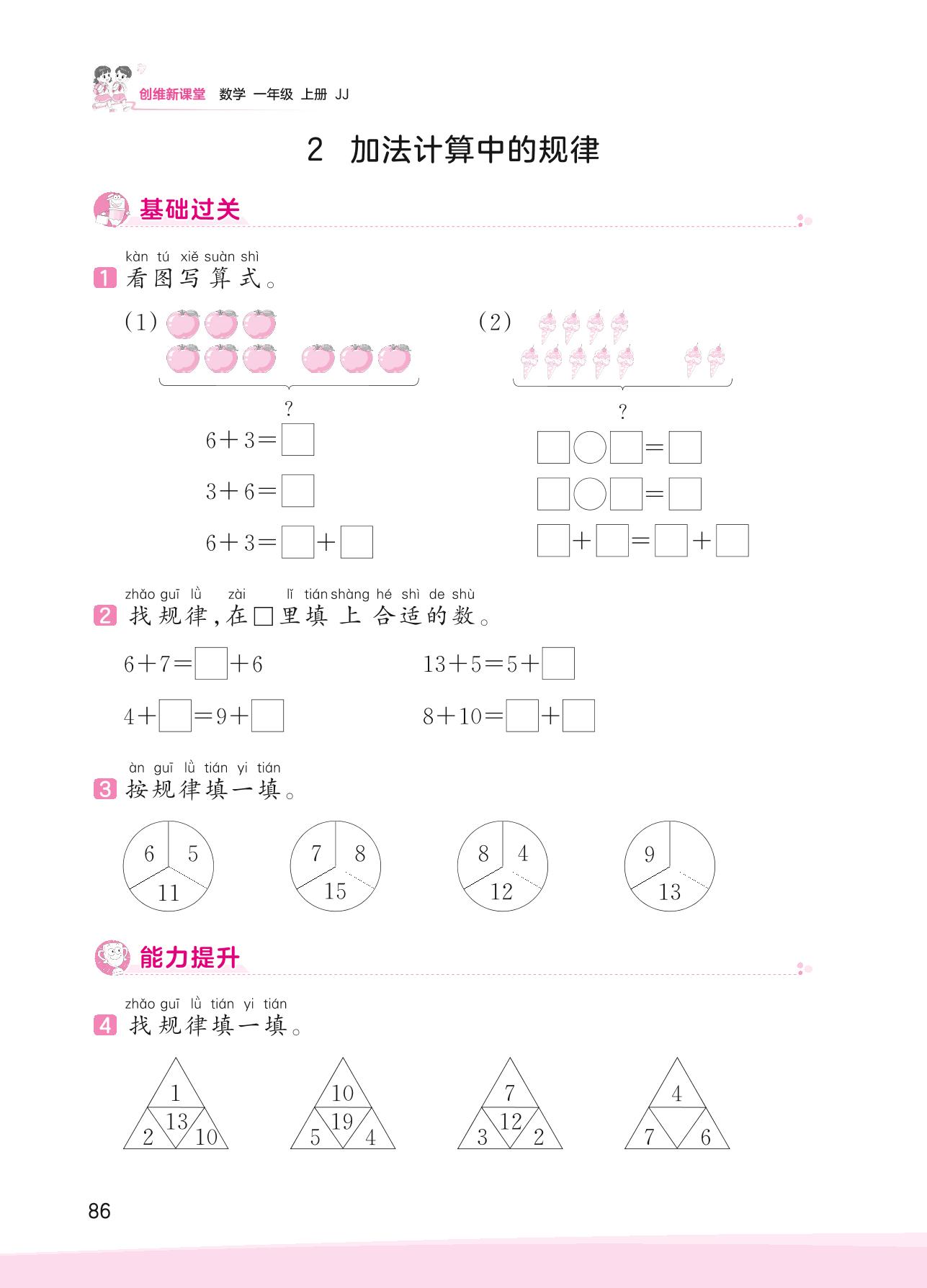 2023上册一年级数学冀教版 十 探索乐园——2 加法计算中的规律